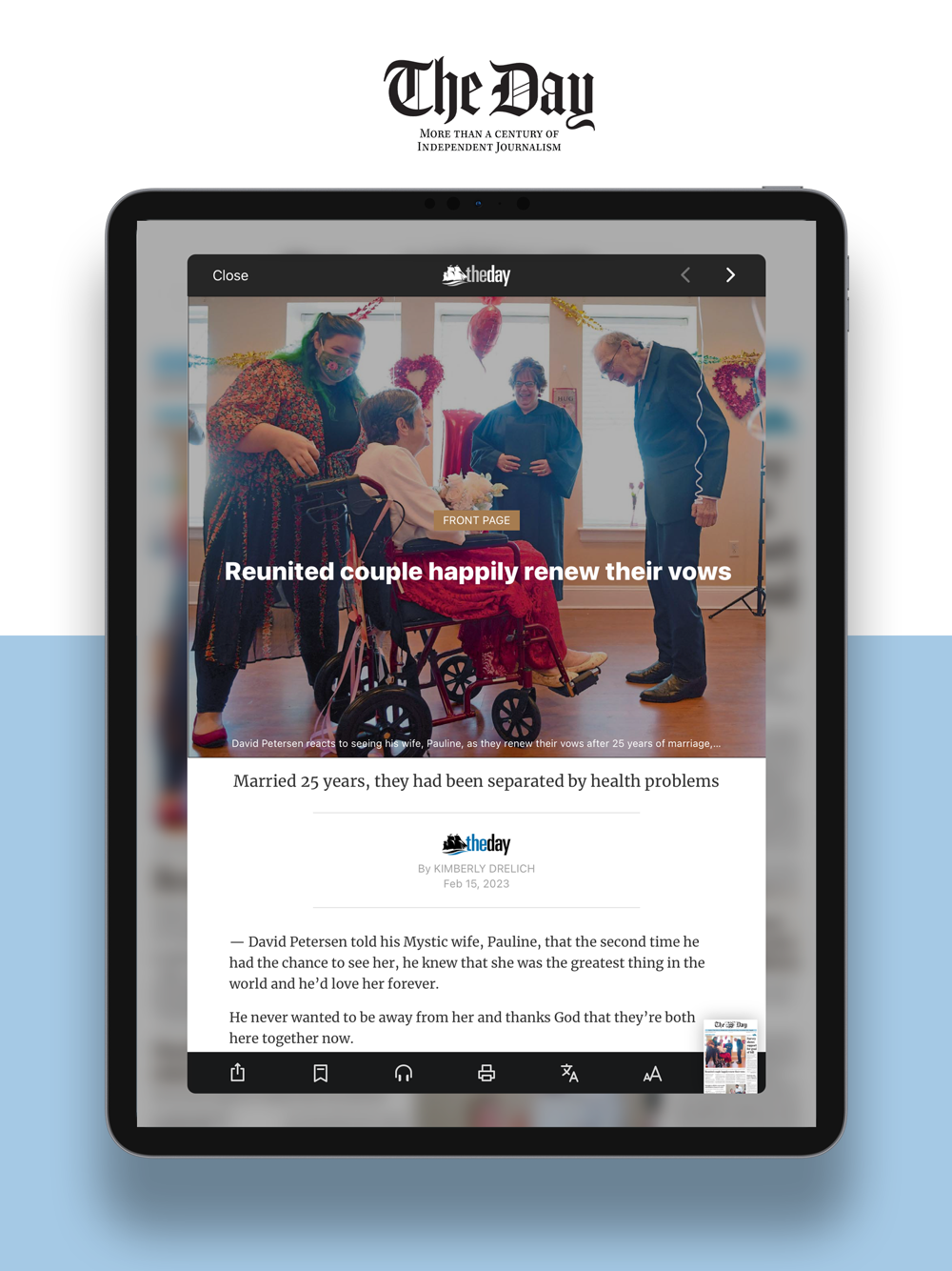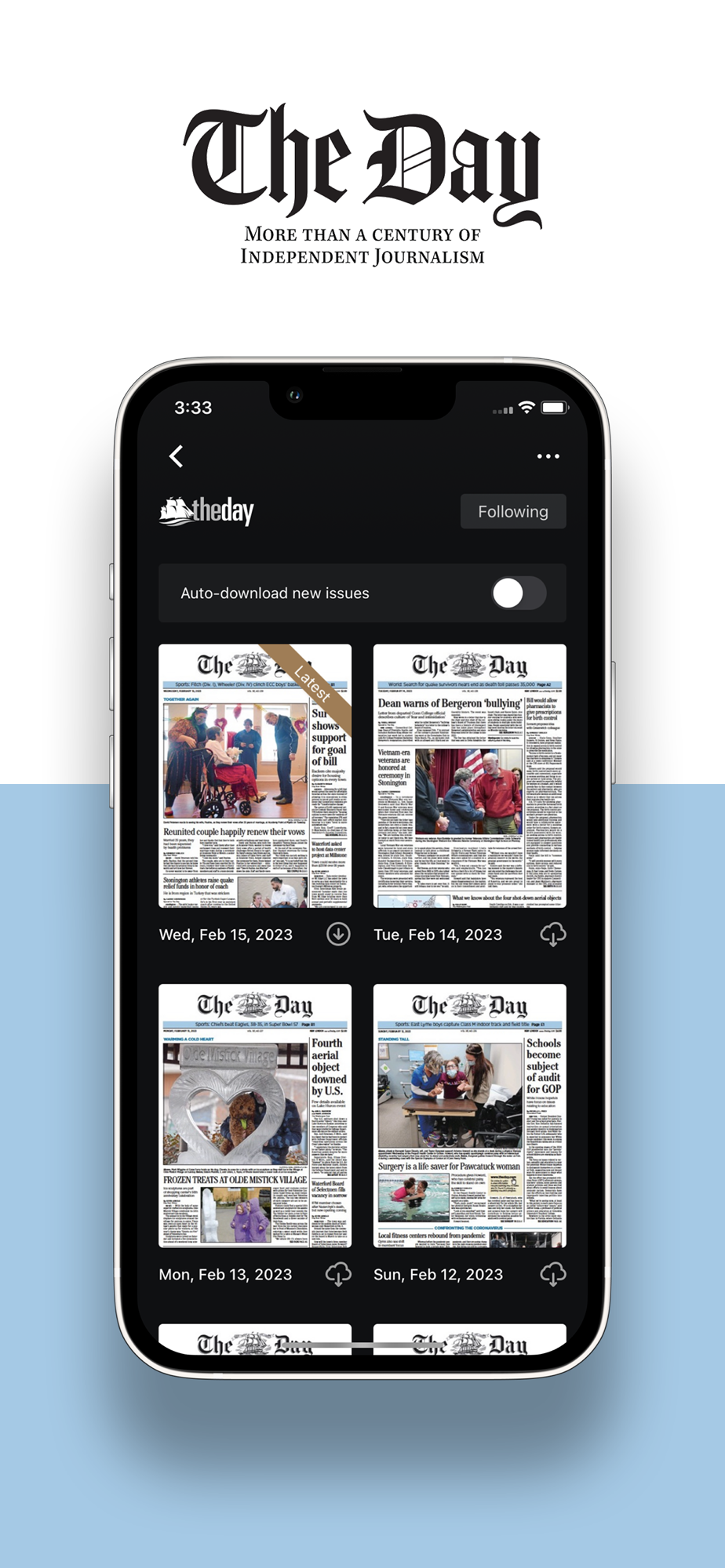 With The Day E-Paper, you can read The Day online in its true printed format from anywhere in the world. The E-Paper is enhanced with the latest digital tools, including RSS feeds, social networking, blogging and much more. You can flip pages, search by keywords, and share articles with friends. Download this app for free and enjoy a free trial of The Day e-Edition!