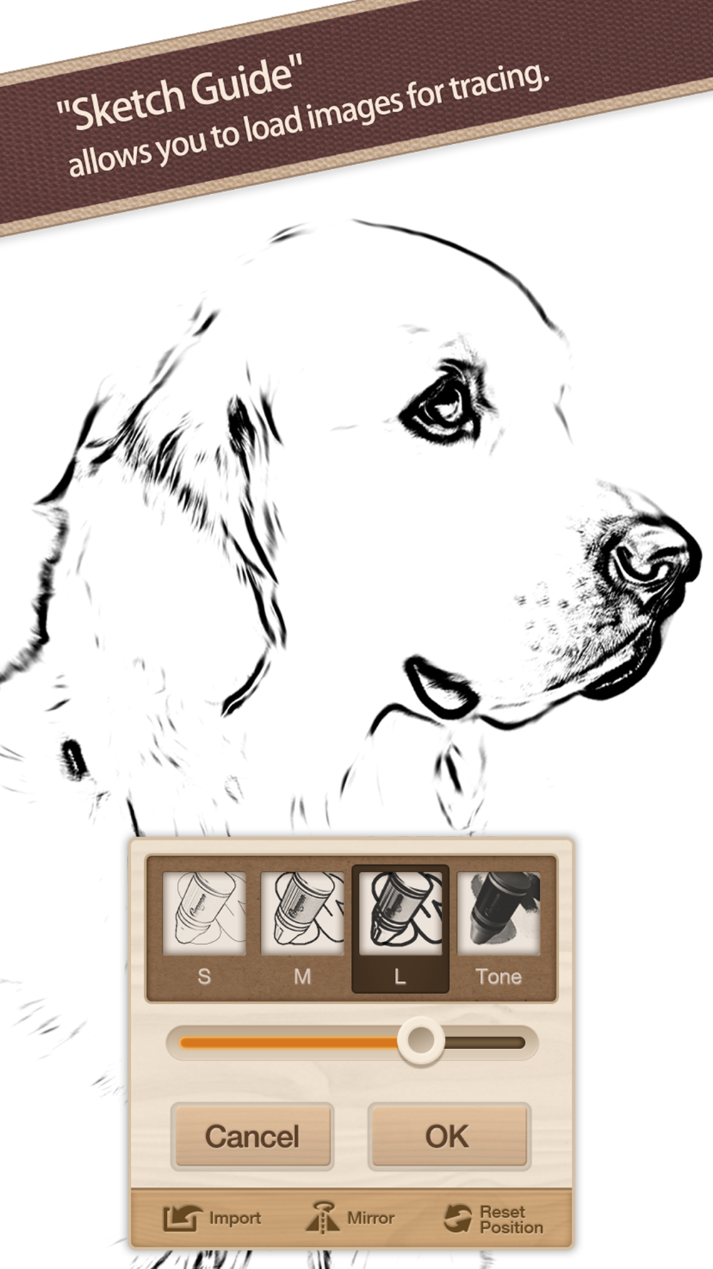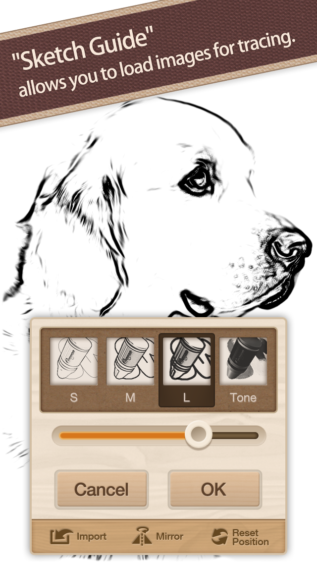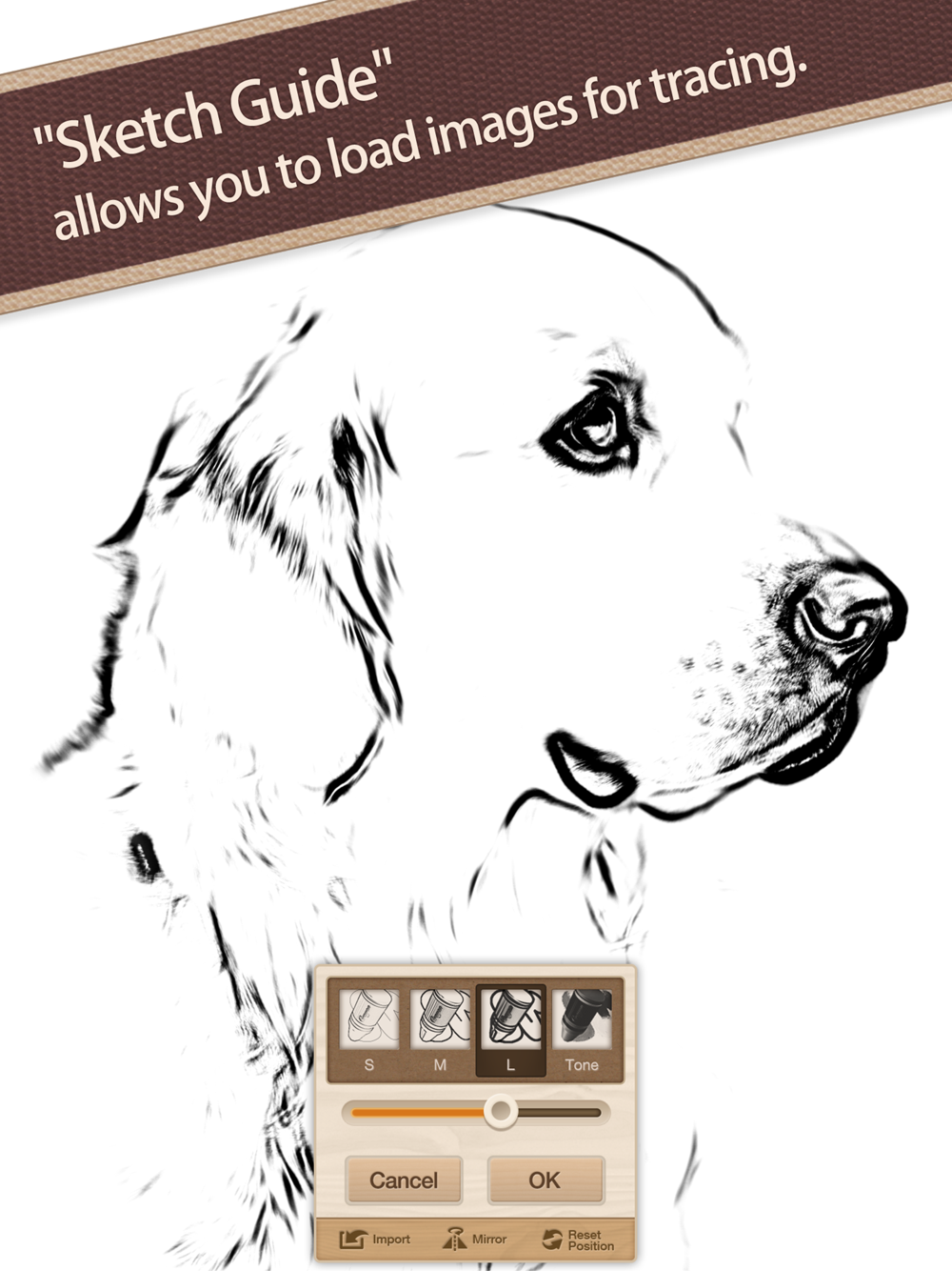 With the Sketch Guide feature, you can set a photo or image as a background to your drawing. Use it to trace over a picture you like or to create an original coloring page.