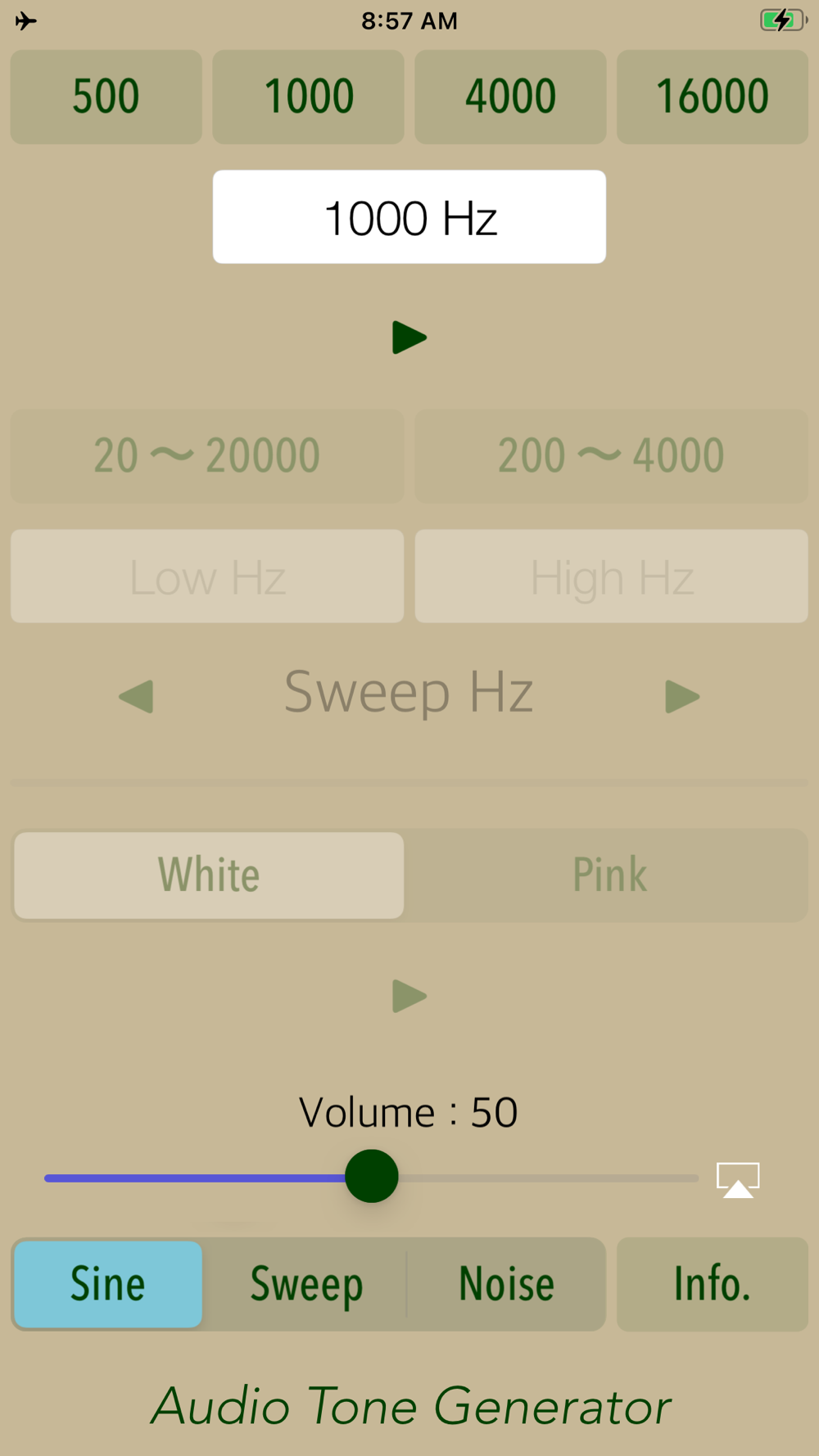 The signals created by this app can be best used in conjunction with external devices, such as an audio spectrum analyzer or a sound level meter.