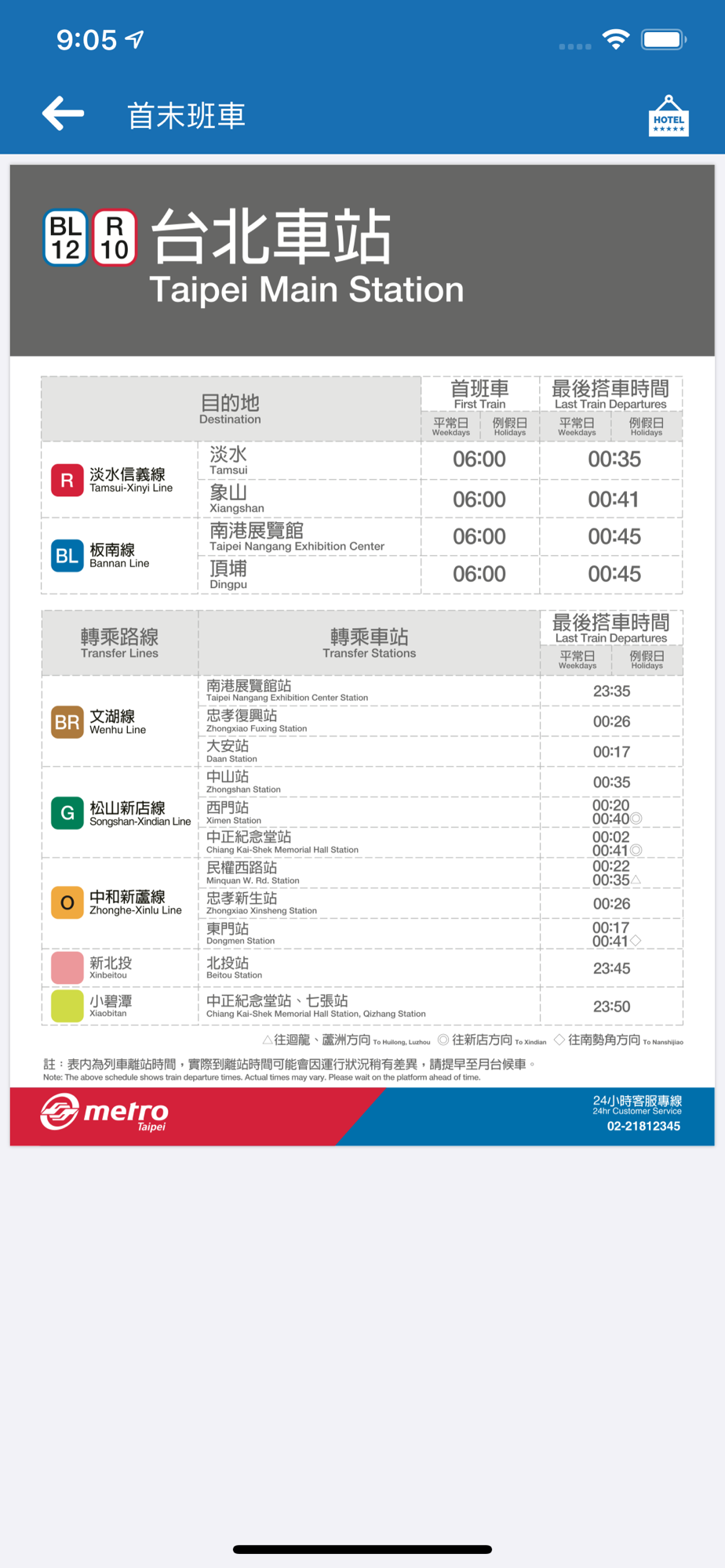 提供首末班表/發車時刻班表/車站詢問處/無障礙電梯位置/停車場/出入口/站內圖/位置圖/假日腳踏車進出等各項車站設施詳細資訊查詢!