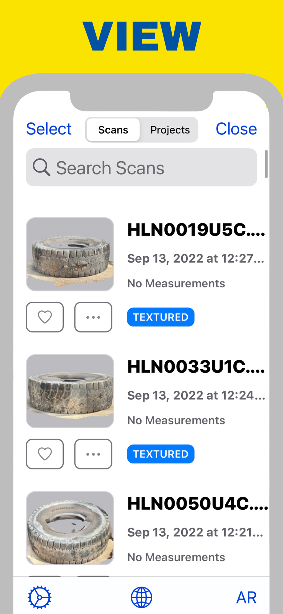 Scan complete tires or specific areas of interest to share virtual tire inspections and improve communication around tire conditions.