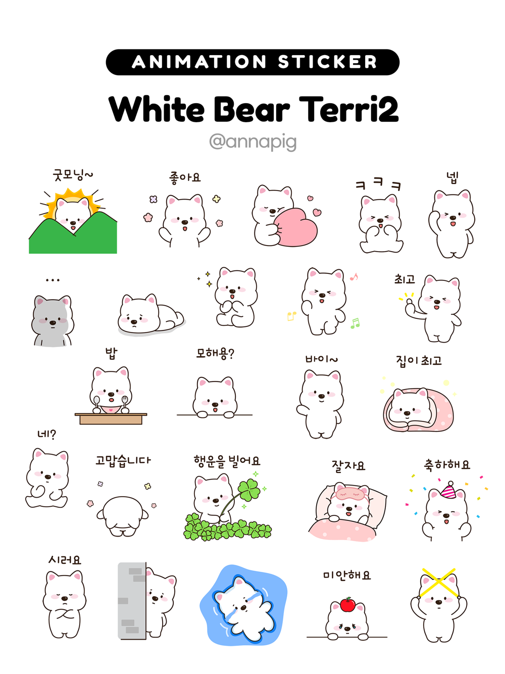 This sticker pack includes 24 expressions most commonly used words in daily life.