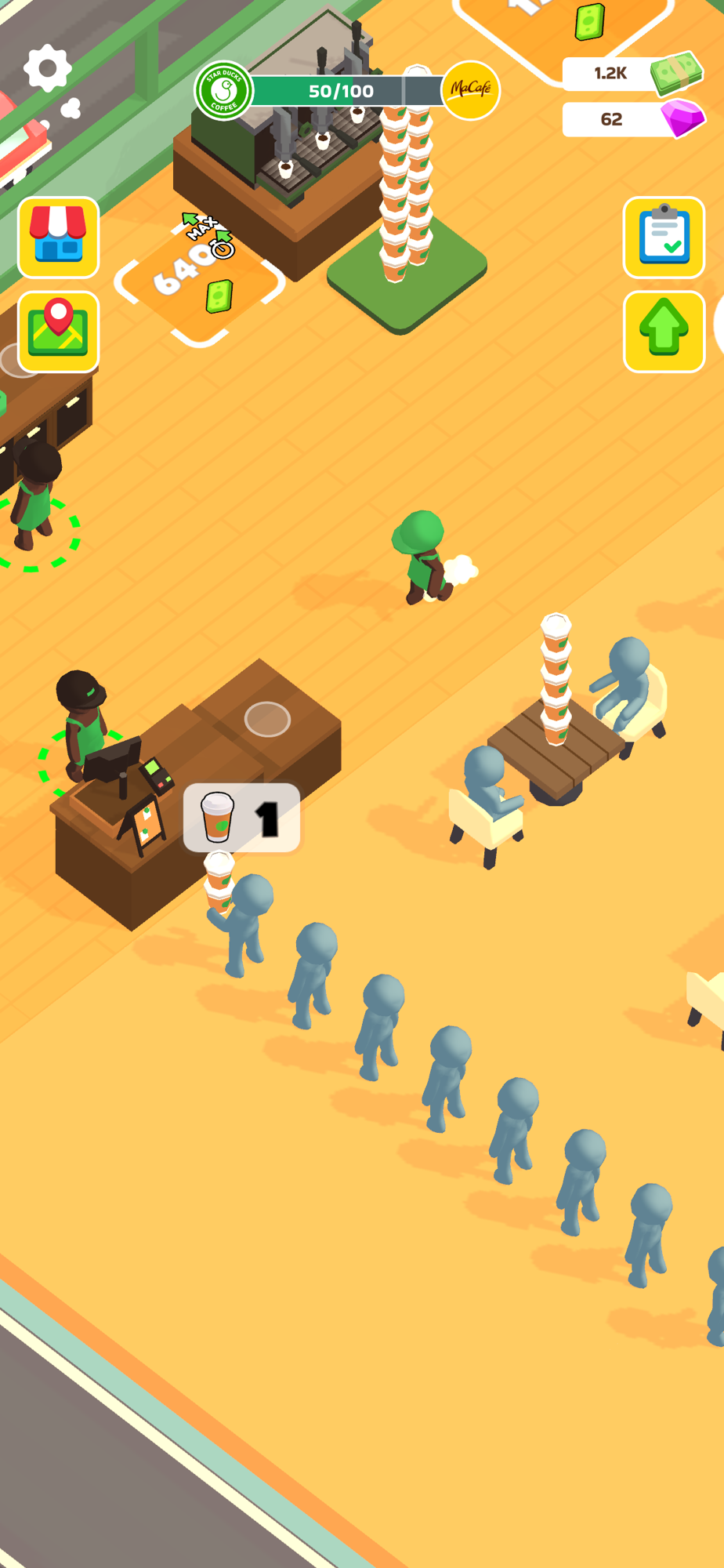 Sell a variety of drinks, keep your store clean and make your customers satisfied. Expanding your coffee shop allows you to hire employees, buy new tables, and attract more customers!