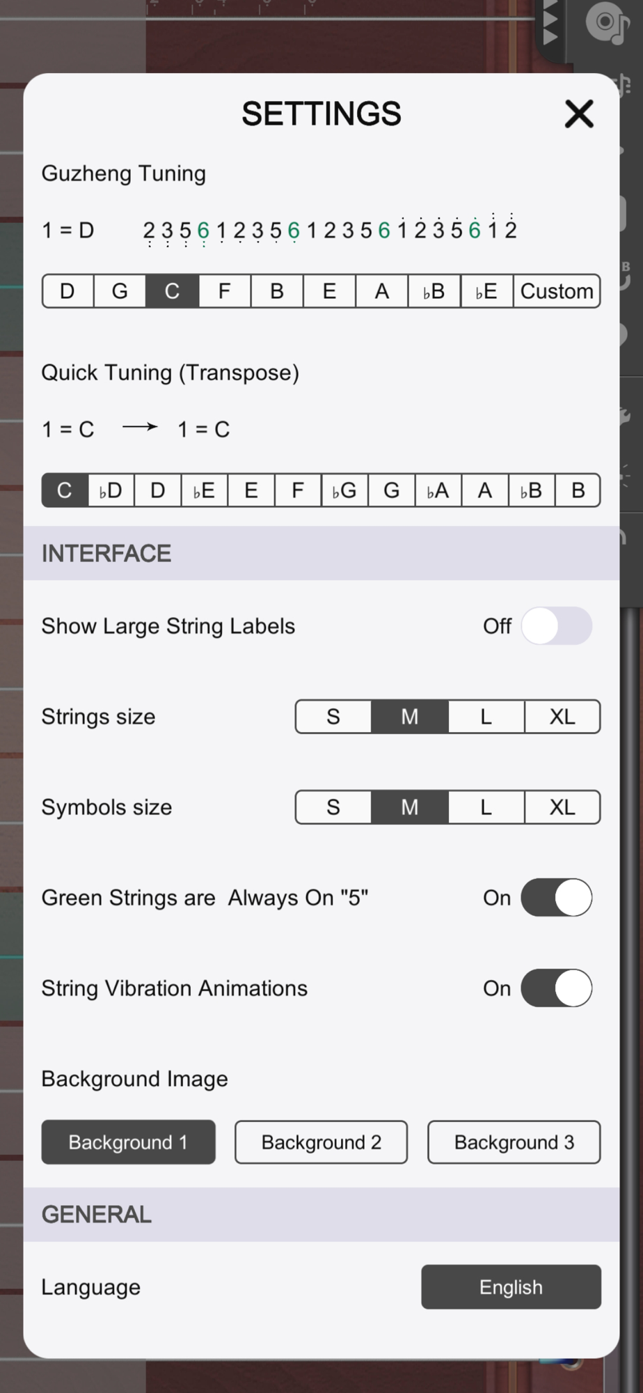 - Flexible Guzheng View, easy scrolling and zooming with drag / pinch gesture on the Pitch Slider Bar.