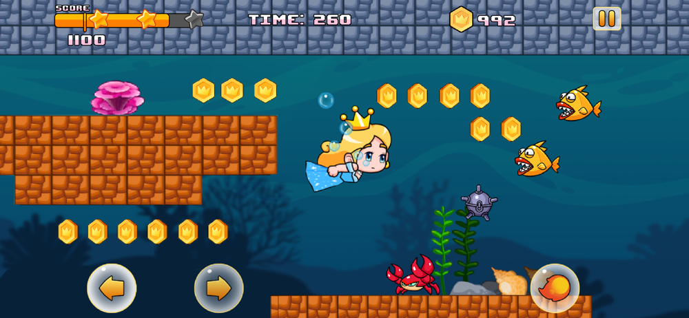 + 6 beautiful world themes: jungle, castle, frozen, underground, desert, underwater.