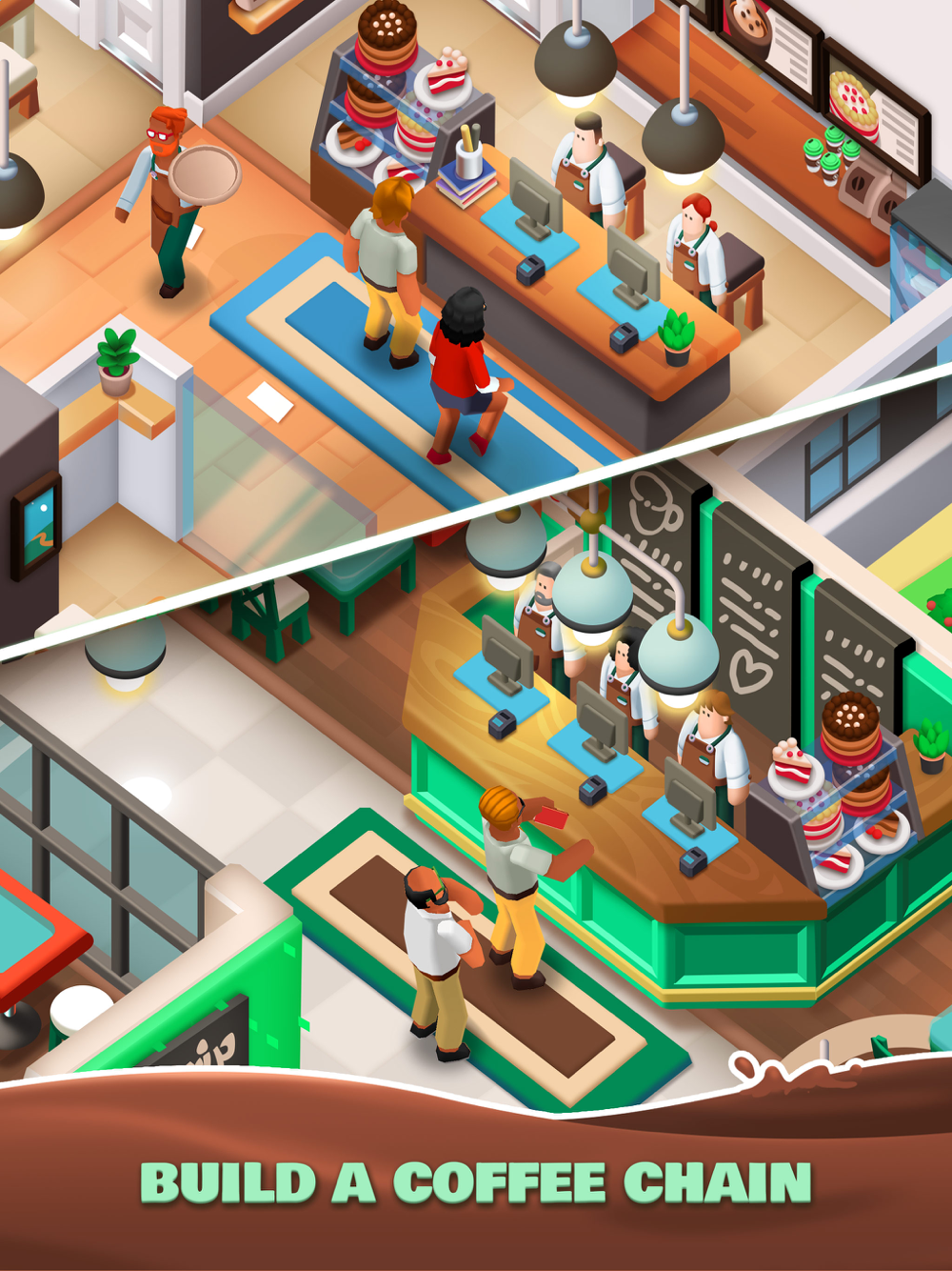 Work hard to unlock new recipes for coffee (Cappuccino, Espresso, Mocha, Latte, Iced coffee, Frappe, etc.), but also snacks and food (Cupcakes, Cookies, Cinnamon rolls, Toasts, Sandwiches, etc.). Contact external suppliers and control all the stock to keep your visitors happy and well-served!