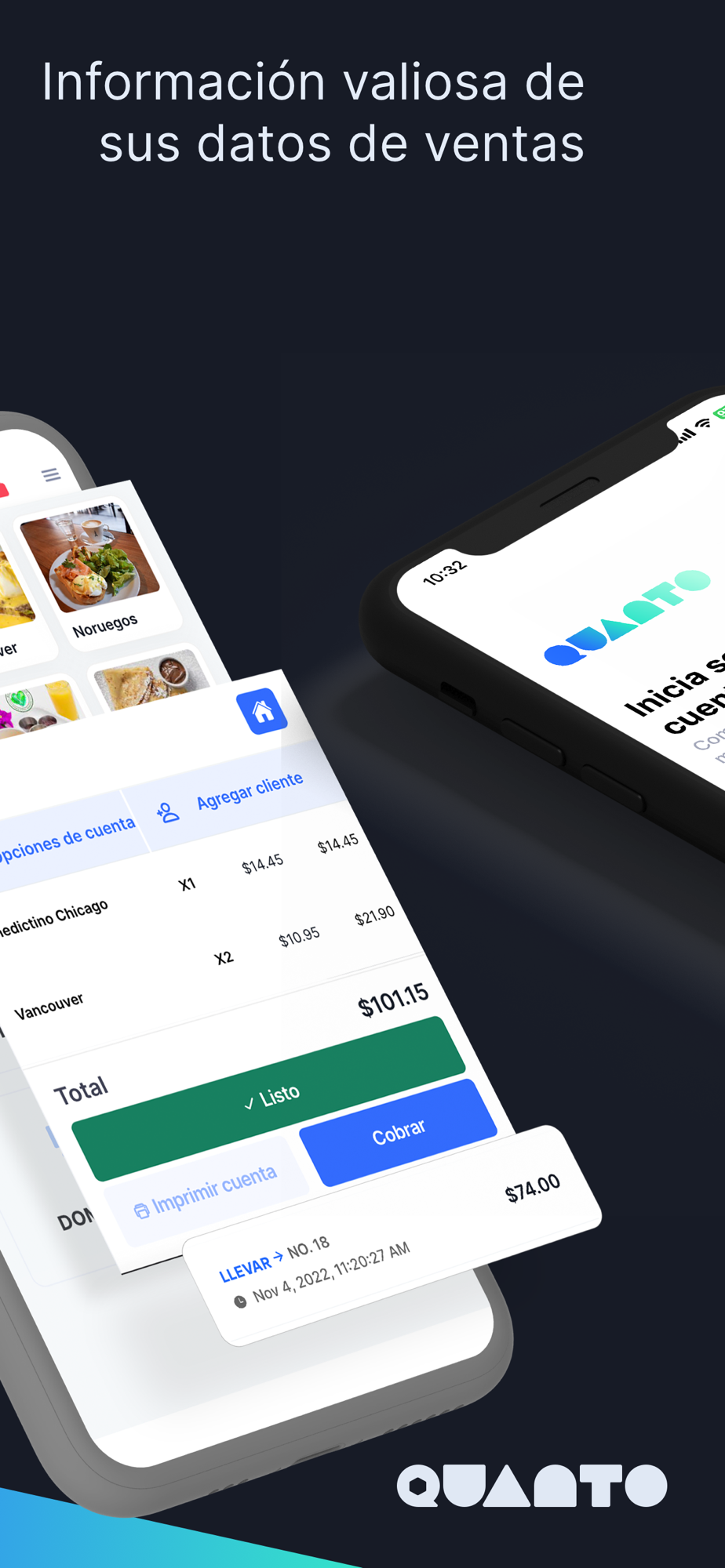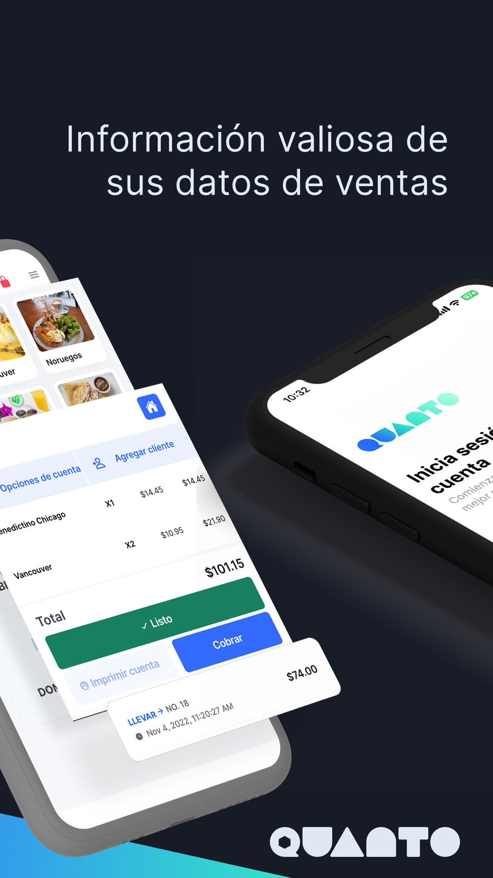 Quanto cuenta con un apartado de reportería y analitica para que veas tus ventas en tiempo real , conozcas los movimientos de tus productos , y el trabajo de tus colaboradores.
