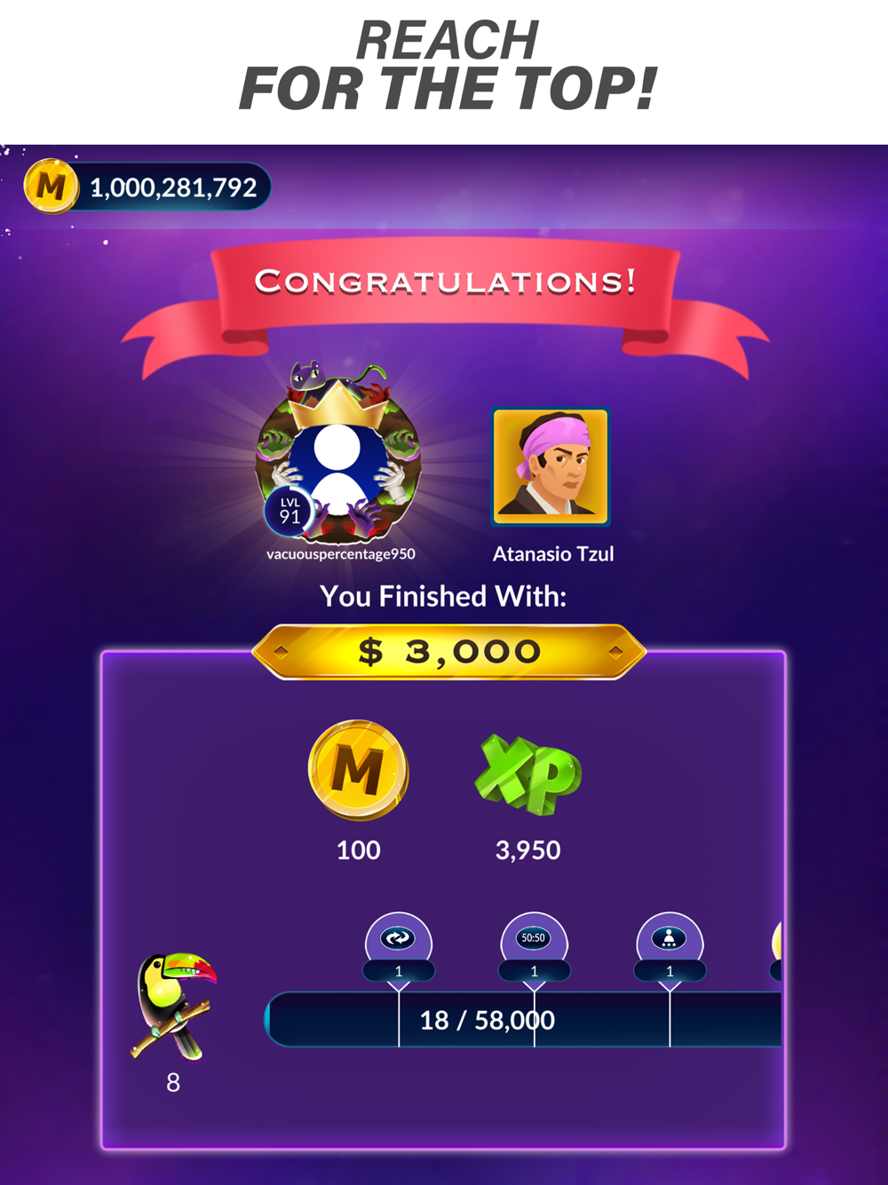 Join the thrill in becoming a MILLIONAIRE! Win BIG REWARDS through cities around the world from Rome to Rio! Start playing WHO WANTS TO BE A MILLIONAIRE+ and prove your smarts!
