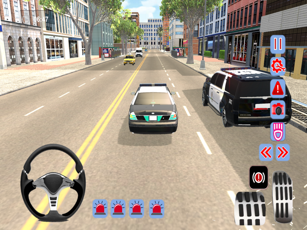 A classic car simulator where you have to drive the car through traffic and collect the criminals trying to escape from the police.