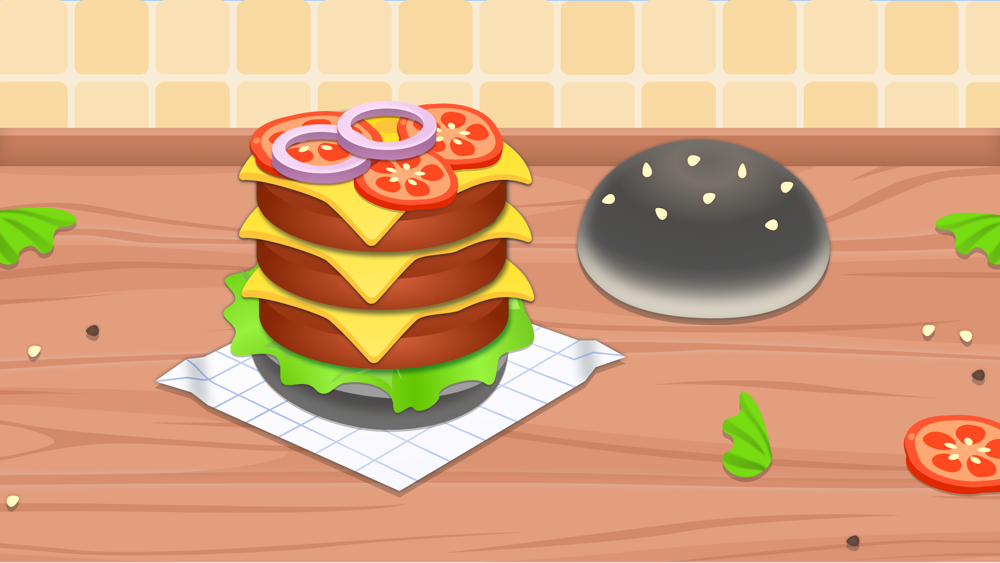 There is a need to improve skills to learn to cook burgers well. In our app we have developed a level system when completing which your kid will be able both to have fun and to work on his fast-food cooking experience. Pay your attention to the presence of a timer determining time for which the kid needs to receive a certain number of visitors.