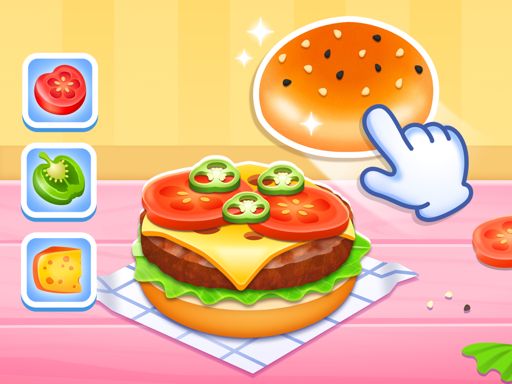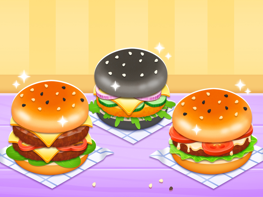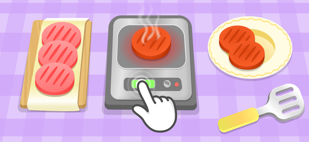 Our app is fit perfectly as for fun as for your kids studying. With the hamburger cooking game, kids will be able to get acquainted with kitchen tools, as well as develop memory and fine motor skills.