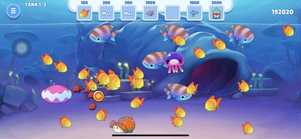 Your main task is to feed your fish at the right time, at the right time, protect them from the dangers of evil fish and monsters. You have to destroy evil fish and collect eggshells to earn money, when you have enough 3 eggshells, you will be through the door and can own more effective assistants. Also be a wise investor, use your funds to buy more fish, unlock secret pets and upgrade your aquarium.