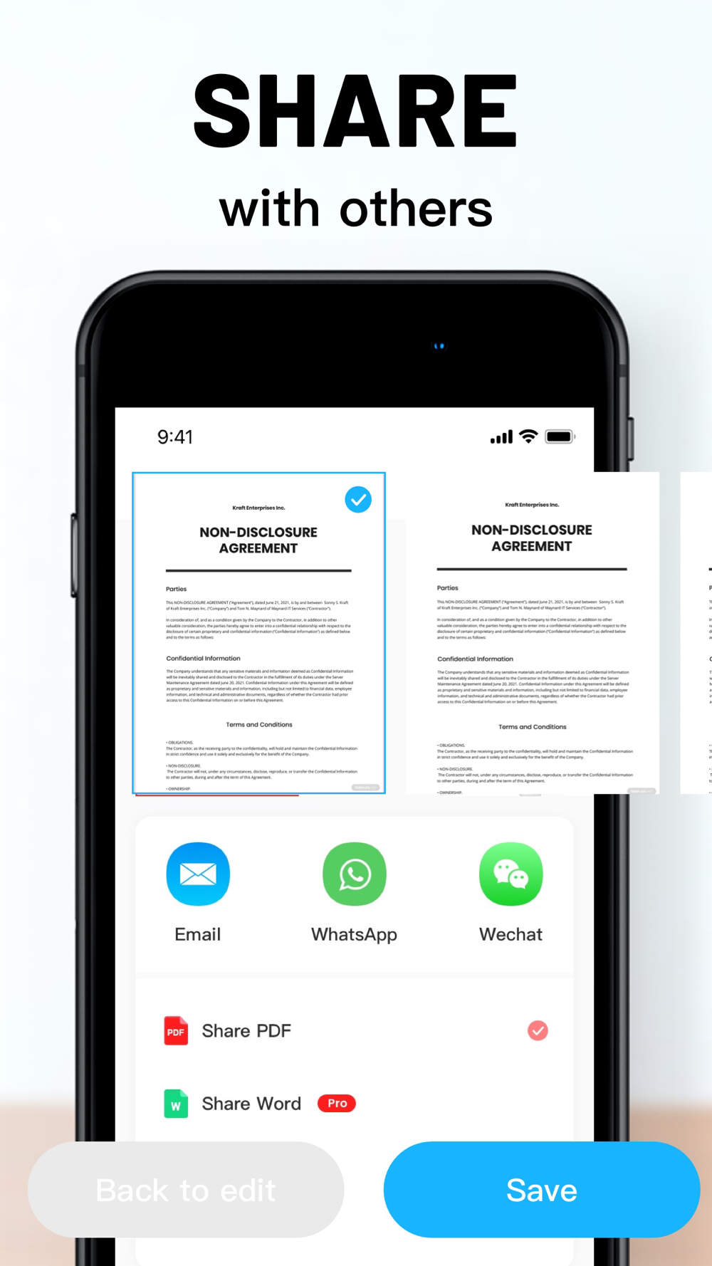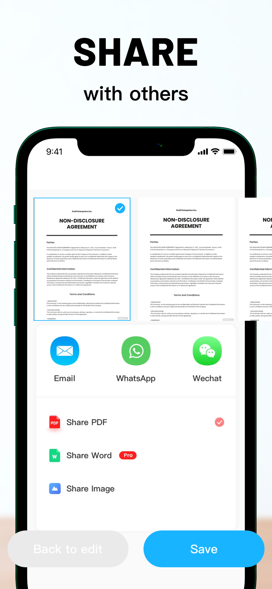 iScan can directly convert files into PDF format or image format, one-click conversion and export to local or share, and also supports sharing file links, which is convenient for you to share with friends.