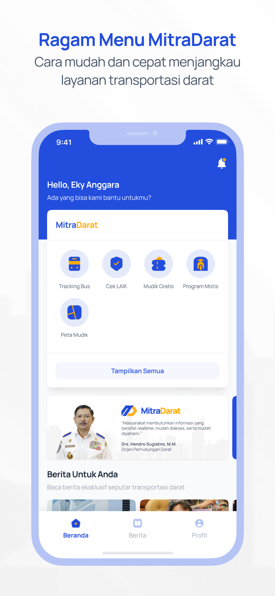 MitraDarat merupakan aplikasi multi layanan yang menyediakan beragam informasi dalam satu pintu terkait pengawasan, perizinan dan operasional bidang transportasi darat.
