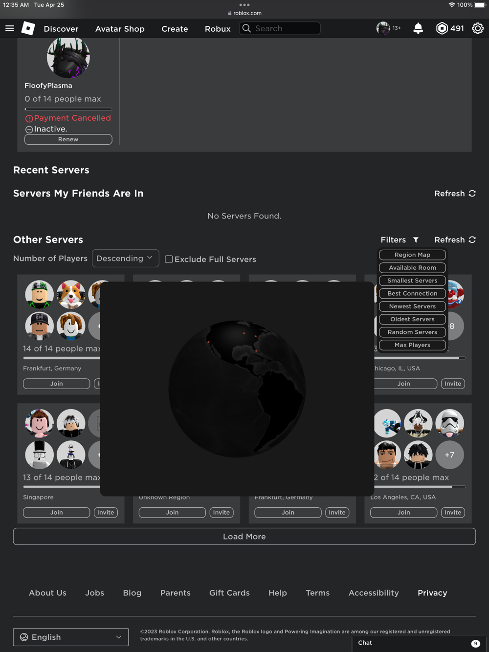 Server Filters - Allows you to join a server by lowest ping, certain region, oldest, smallest and others