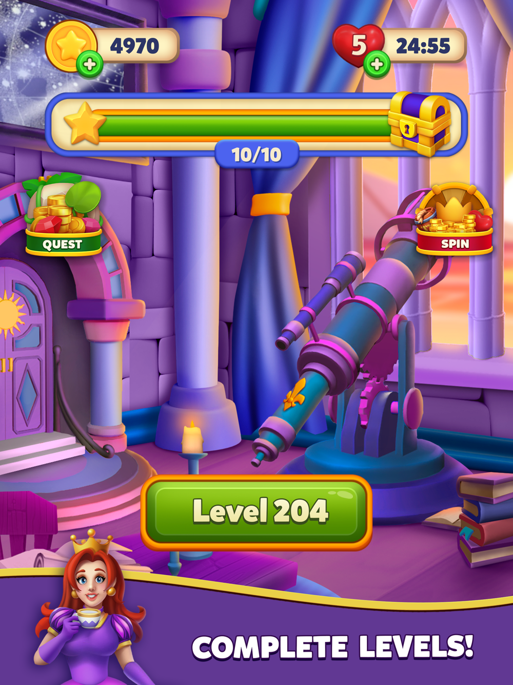 Break obstacles and build patterns to unlock locations in the Magic Castle. Join Princess Matilda on her exciting castle quest and have fun in this puzzling adventure!