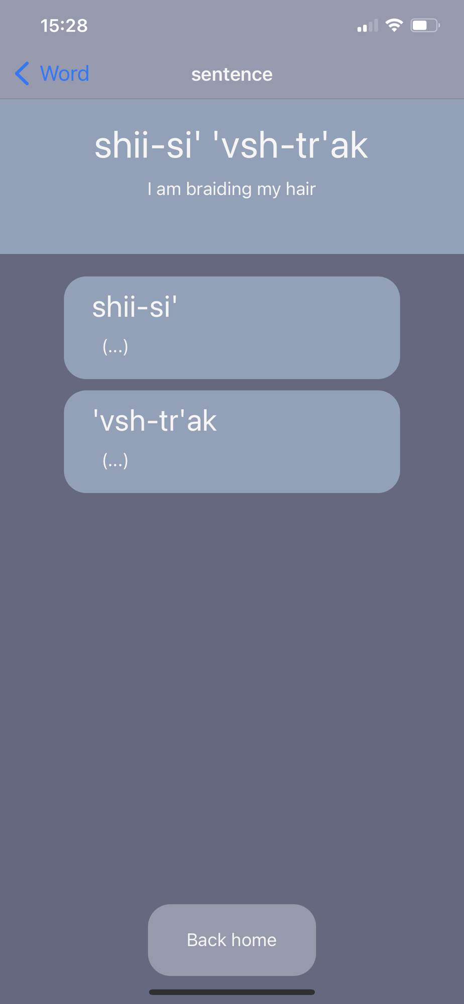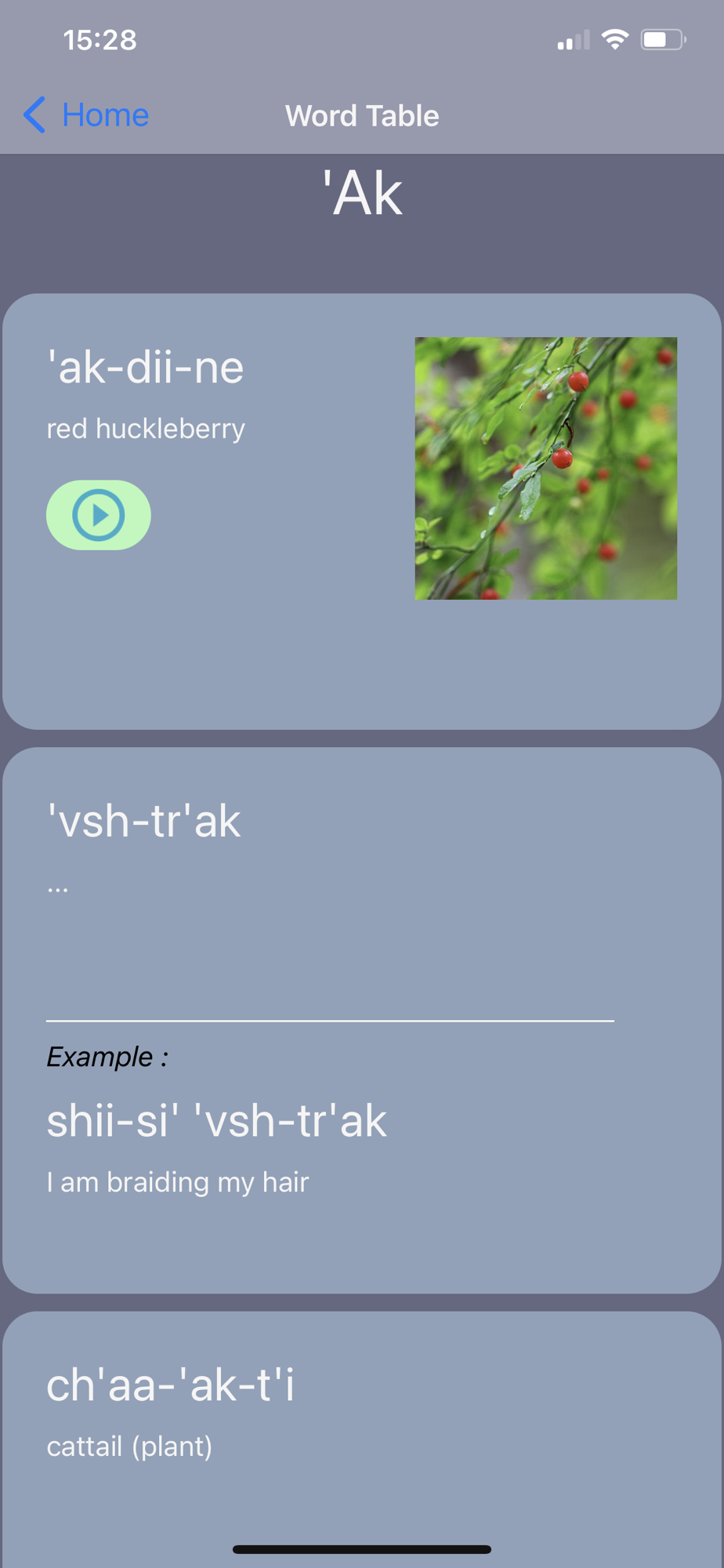 Featuring a comprehensive list of words, sentences, and associated audio, Naa-ch' vlh-mvs-ne allows you to quickly find the word or expression you need to communicate more efficiently. You can search for entries by word, sentence, or meaning, making it easy to learn new words and phrases in context.