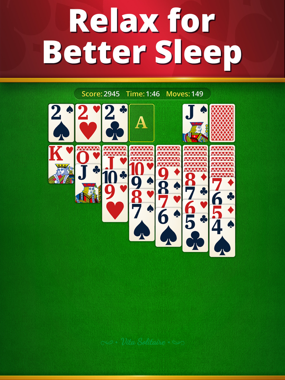 • Mental Kickstart: Vita Solitaire provides the perfect blend of relaxation with an Intellect turbocharge. Playing our version of Solitaire enhances problem-solving skills, mental alacrity, and can even aids in a getting a good night sleep, making it a truly all around beneficial puzzle game.