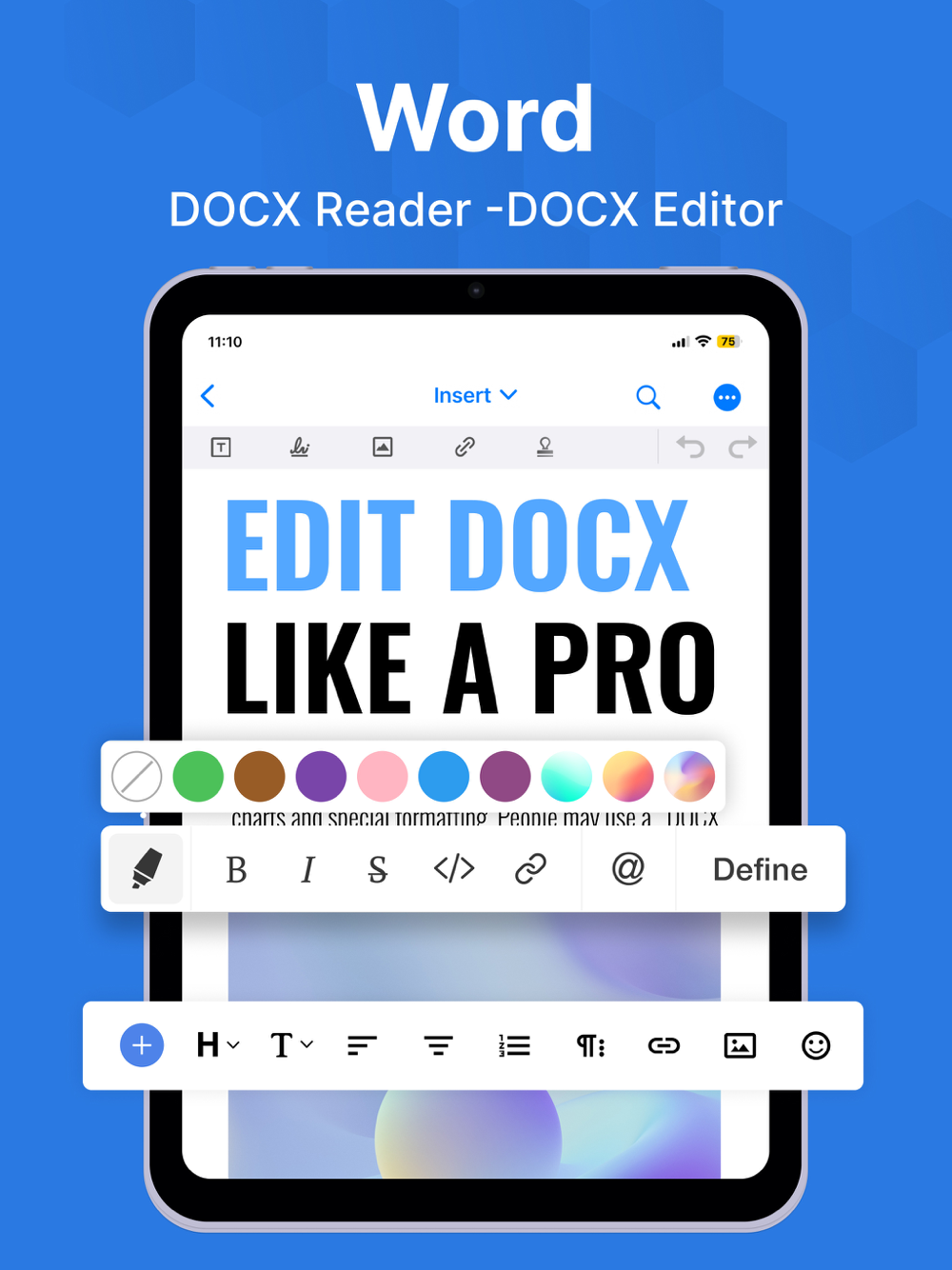 Office Suite-Word, Sheets, PPT is a comprehensive productivity app for iOS that combines the essential tools of document creation and editing into one powerful application.