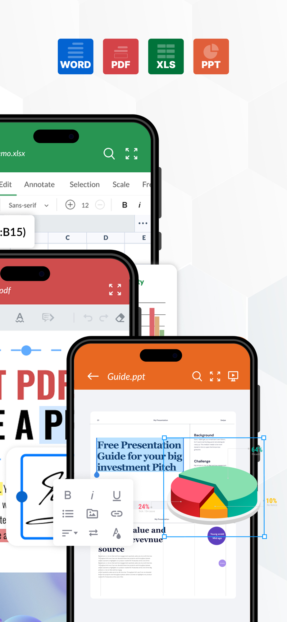 With a user-friendly interface, robust features, and seamless synchronization across all devices, Office Suite-Word, Sheets, PPT is the ultimate productivity solution for users on-the-go.