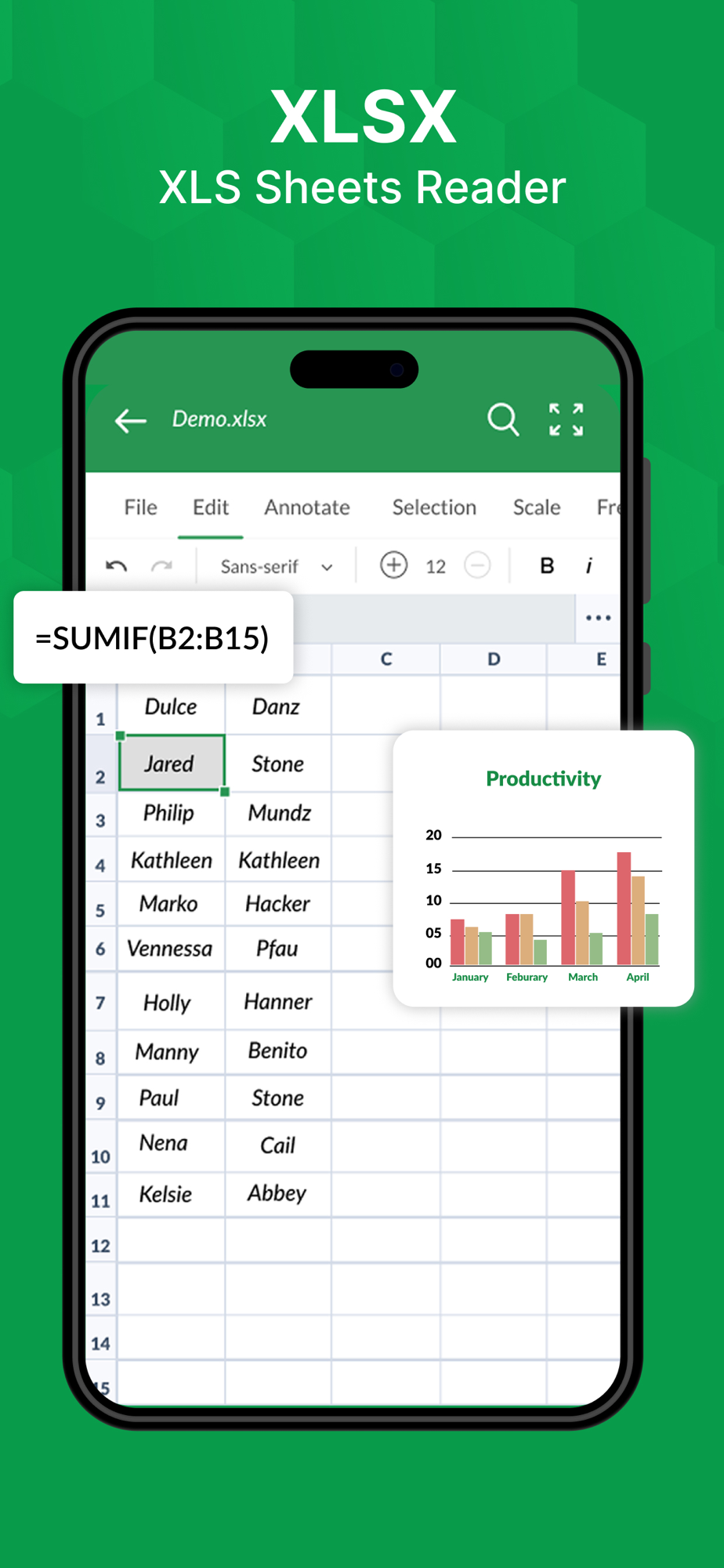 3. Spreadsheet XLS Editor: Our spreadsheet editor is equipped with all the essential features for creating and editing spreadsheets. You can input data, create formulas, and format cells with ease. You can also create graphs and charts to visualize your data and make it more presentable.