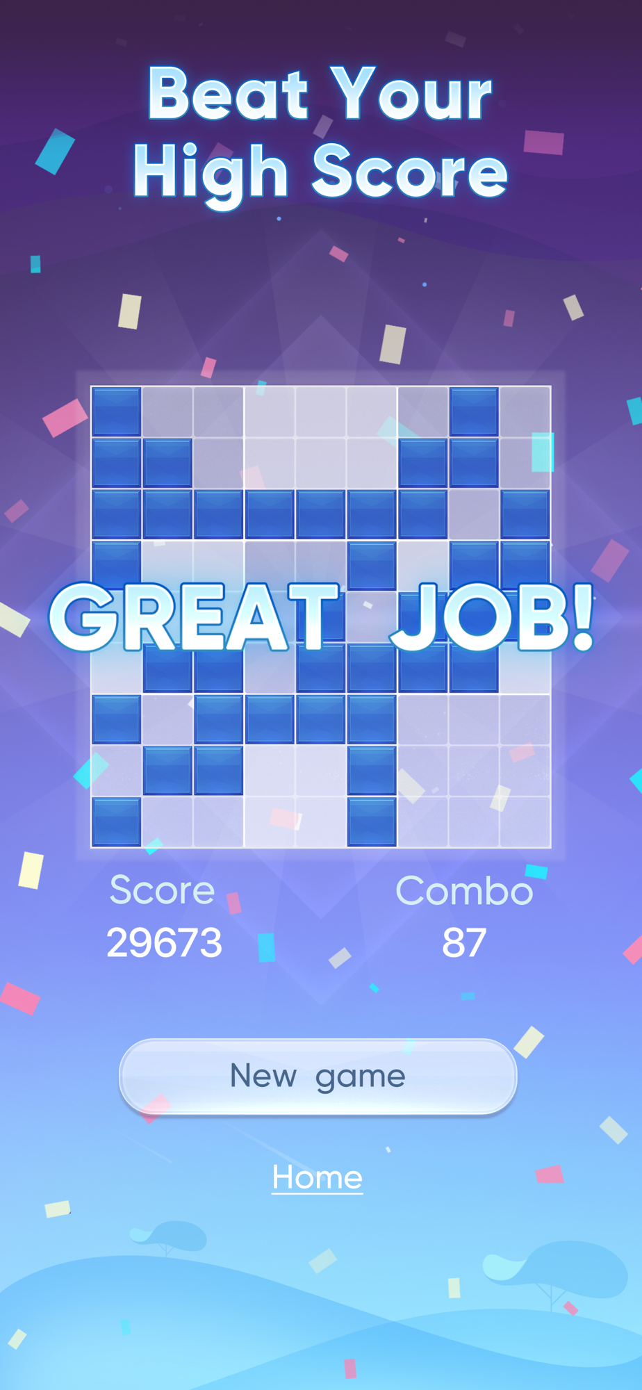 Sharpen your mind and improve your IQ. Try to place blocks on the board to destroy lines or squares with every move to keep the board from filling up.