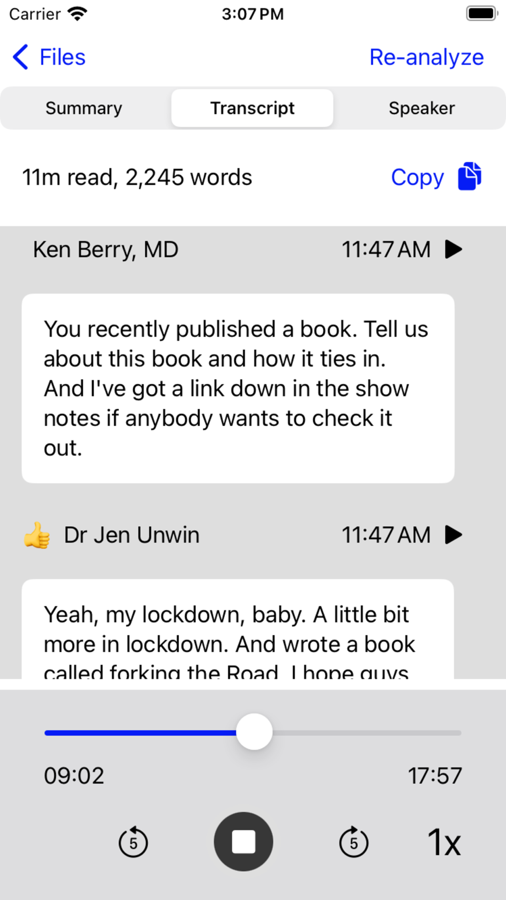 Speaker Detection: Speakers are detected, and the transcript is labeled by speaker.