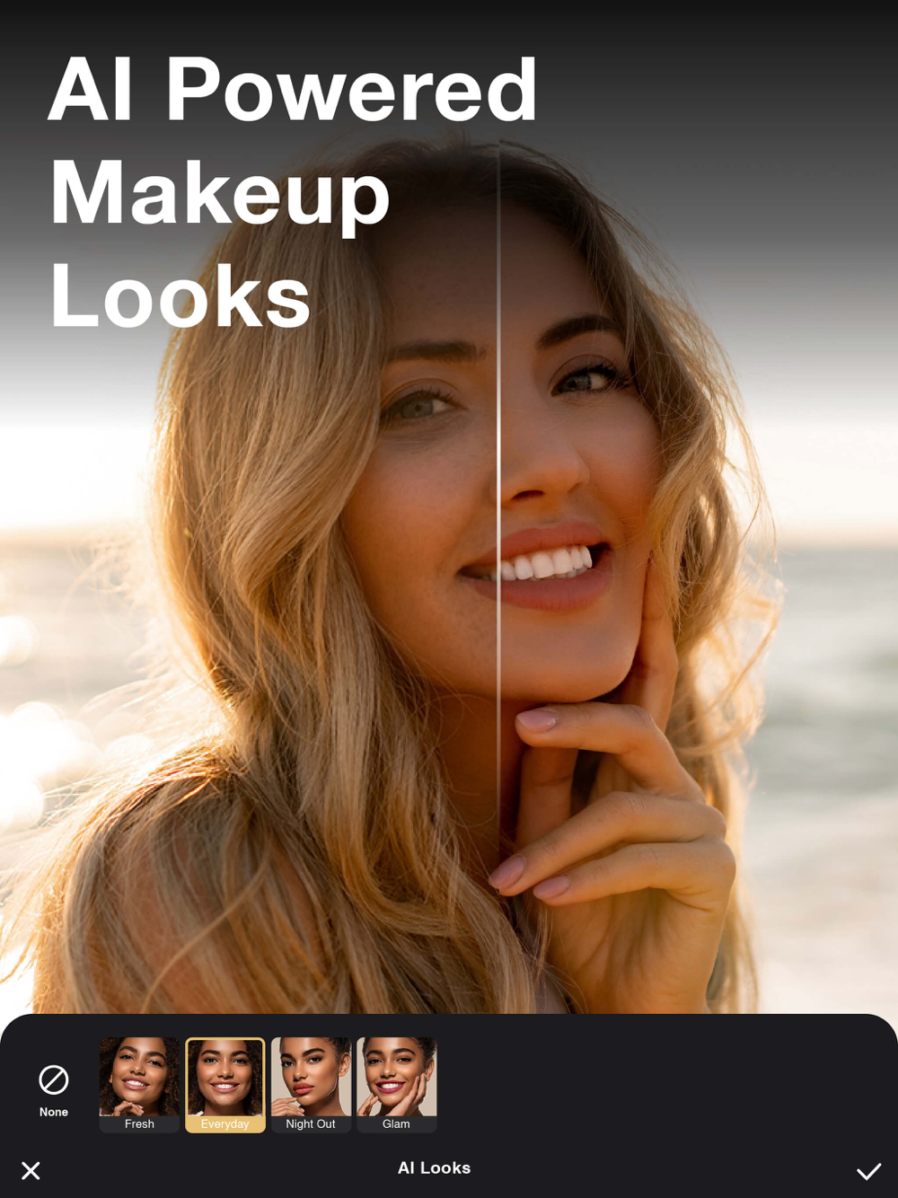 • Employ AI to apply or simulate makeup looks, from skin softening to full makeup applications, achieving a flawless appearance.