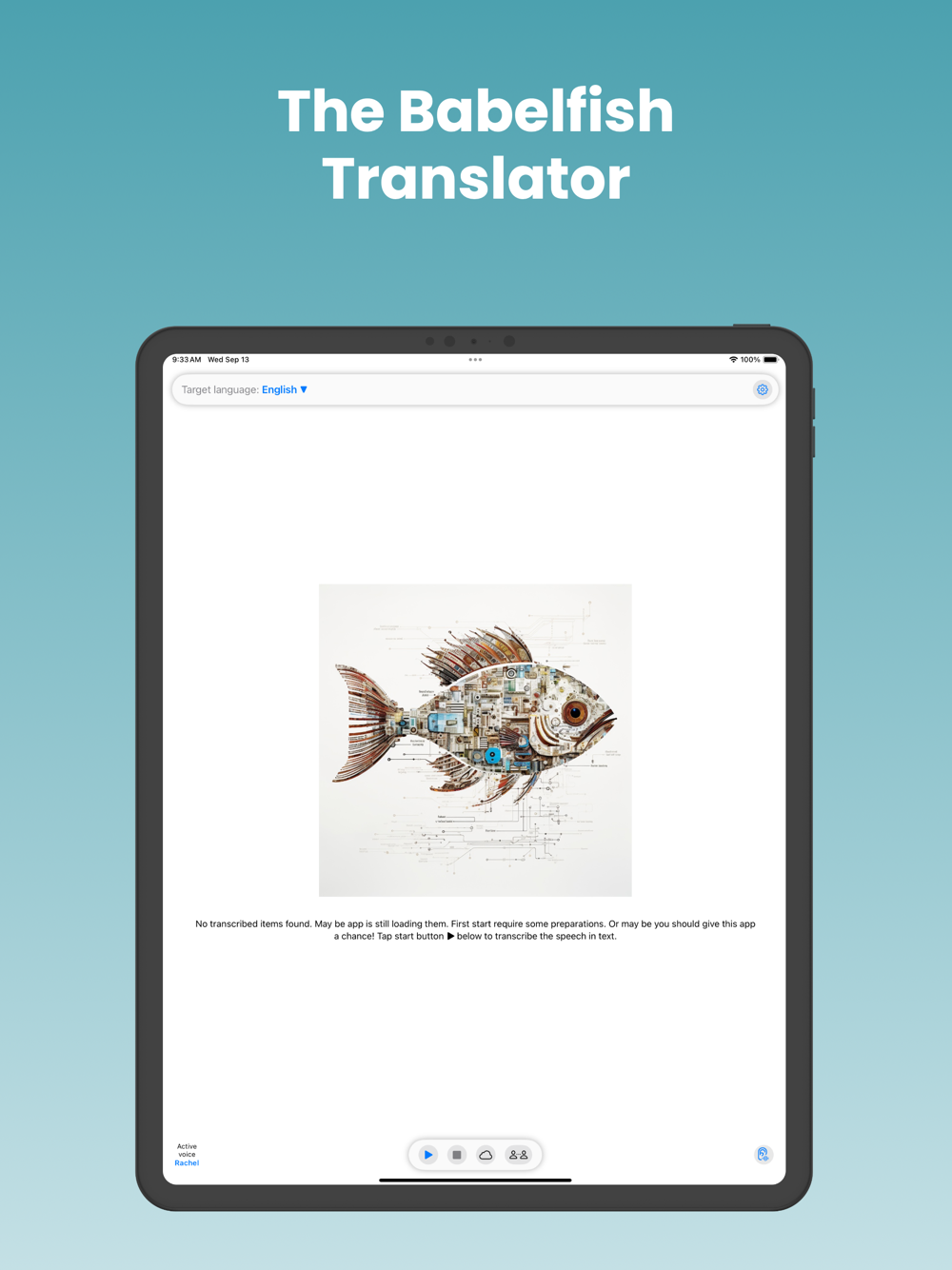 Seamlessly transcribe and translate text in real-time, unlocking communication in a wide range of languages, even in offline mode for your convenience. Experience personalised text-to-speech functionality, with a diverse library of voices to suit your preferences. You may use your own voice for text-to-speech! The Babelfish Translator is your ultimate linguistic companion, enabling efficient and accurate multilingual conversations for both personal and professional use, no matter where you are in the world.