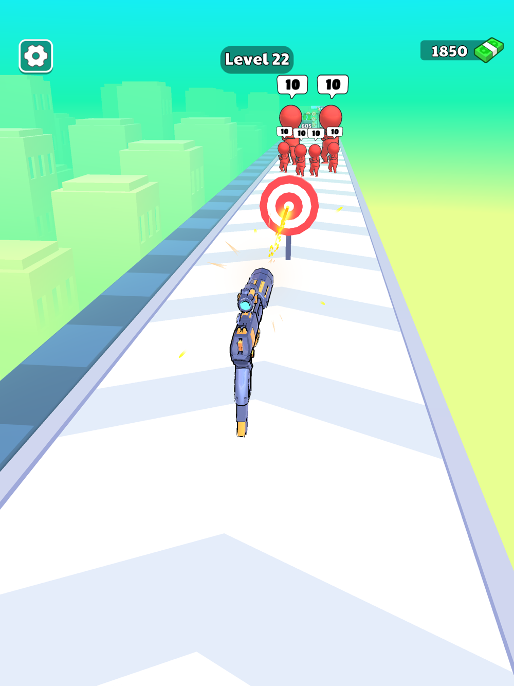 Clear and shoot obstacles to unlock an arsenal of powerful weapons. Test your aiming accuracy by shooting down targets and enemies. Immerse yourself in heart-pounding run and gun action!