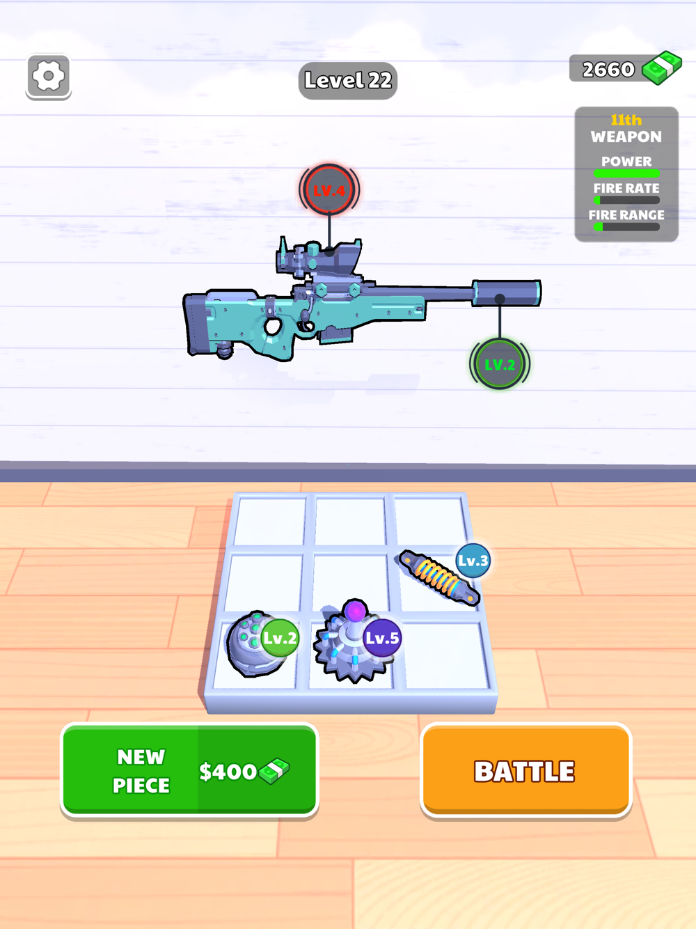 Upgrade your firepower by crafting and merging weapon parts. Witness the evolution of your guns, from basic firearms to advanced weaponry. Become the ultimate gun craftsman!