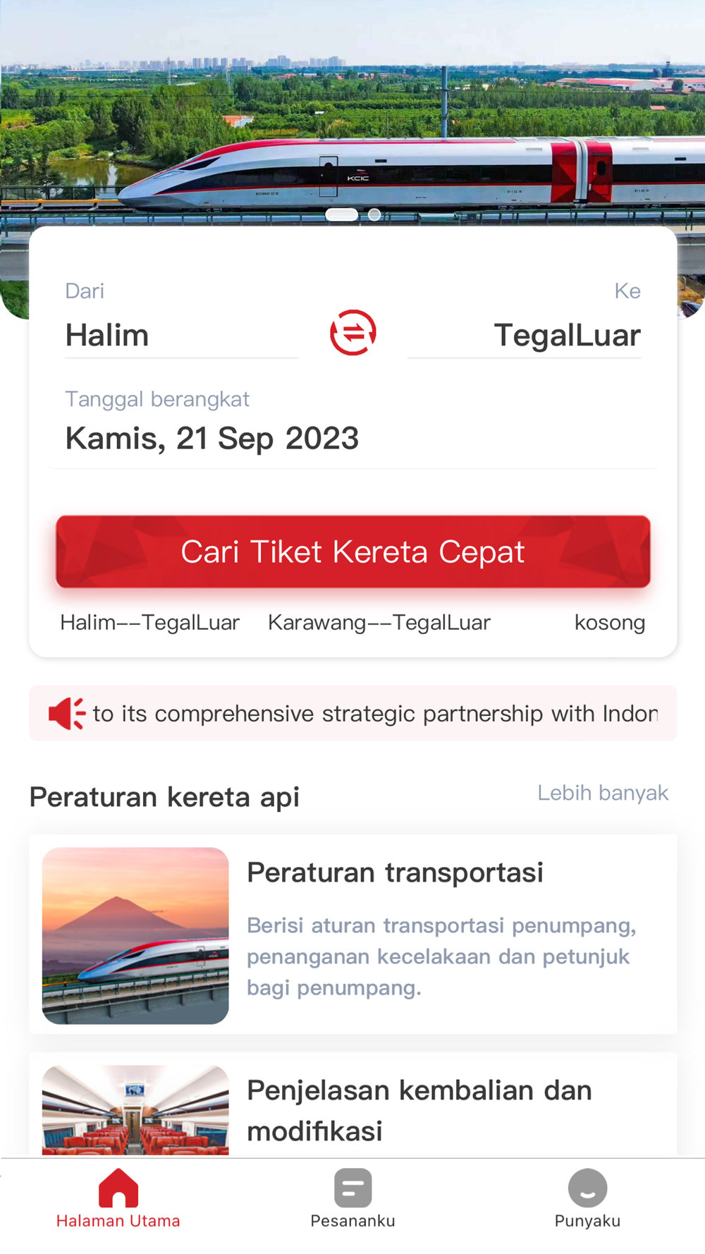 A ticketing software for purchasing Indonesian high-speed rail tickets
