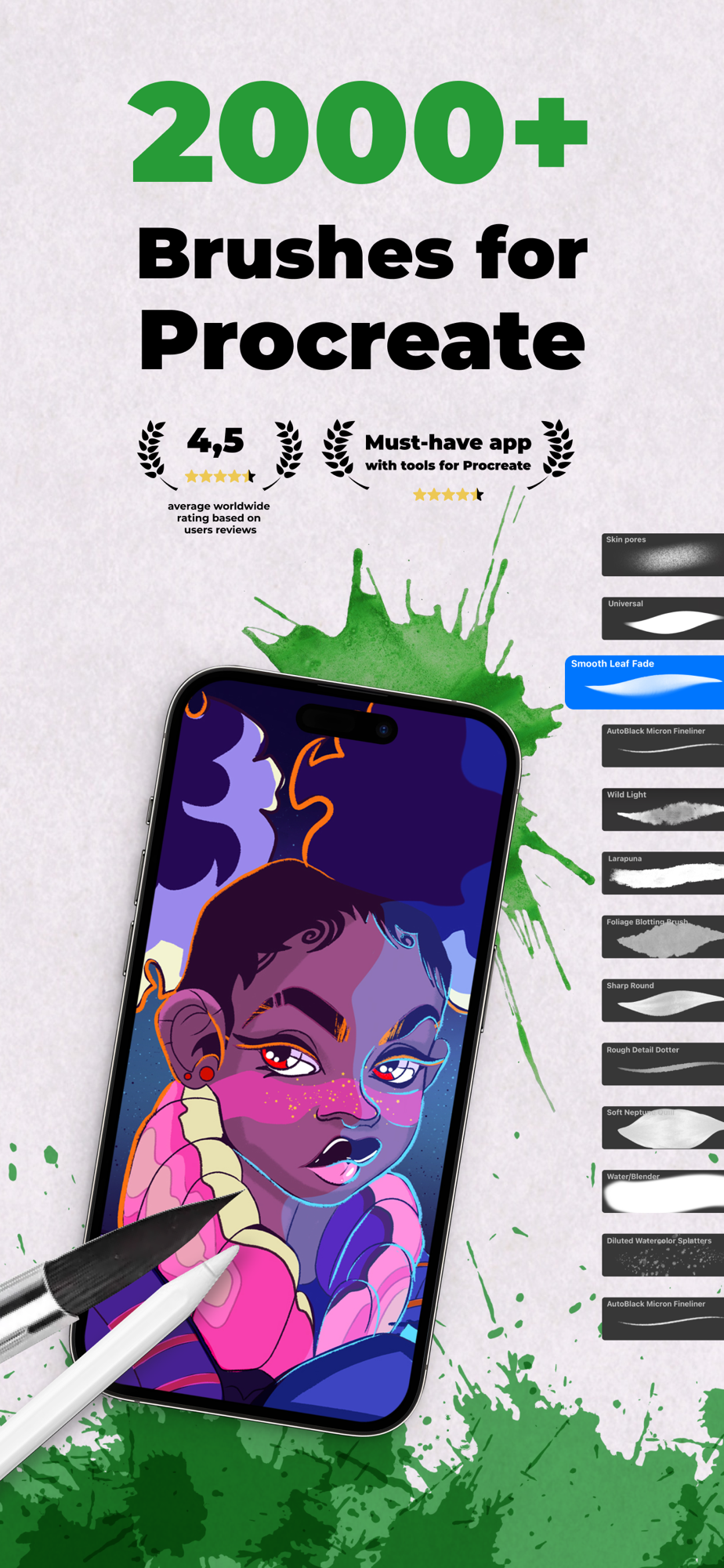 We offer you the largest & most diverse collection of high-quality brushes, handcrafted by talented artists all across the globe. You need just a few taps to create a pro-level masterpiece: pick up the brushes, download them, and dive deep into your creative space.