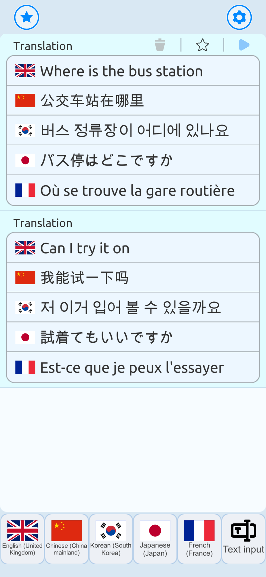 In fact, when traveling in non-English-speaking areas, using this app and setting the language to [Your native language + English + Local language], three languages, will be more convenient than using a translator with only two languages. Your native language and the local language are used to ensure mutual understanding of the intended meaning in the conversation. Additionally, due to the universality of English, it can serve as a connection point for direct communication between both parties. For example, you can use a certain English word from the sentences together to convey meaning.