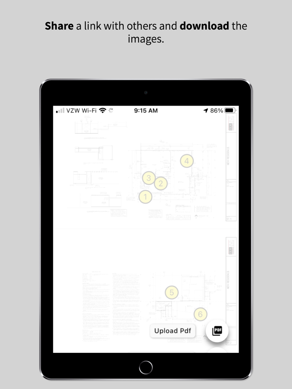 For architects and engineers, upload your PDF set and share the link with a contractor. When the someone adds pictures to the PDF, anyone with the link can view, download, or share them with others. Note that you can also add photos of your hand sketches, screenshots, etc.
