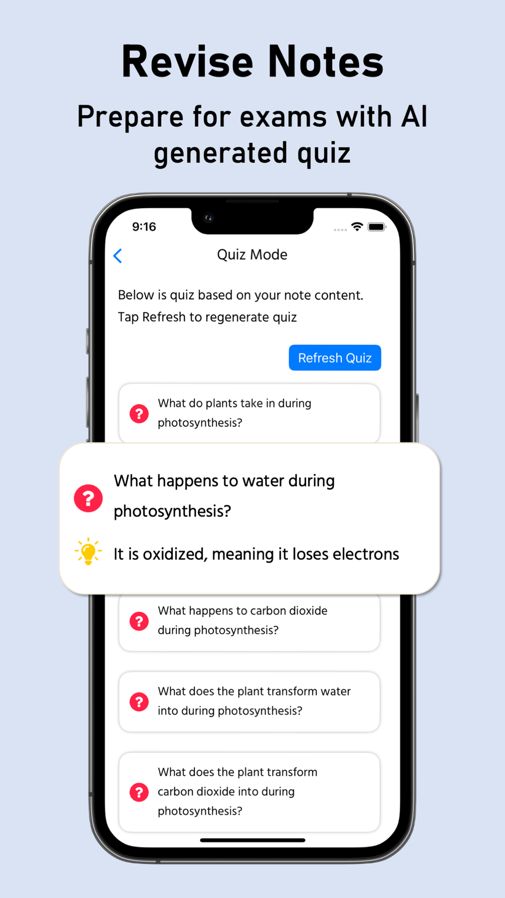 **You can not only create study notes in this app but also revise it and prepare it for exams. But what else makes you better prepared for your exams than tests and quiz. Guess what! This app can make you a quiz based on your note content so that you can answer them and prepare any time you want.