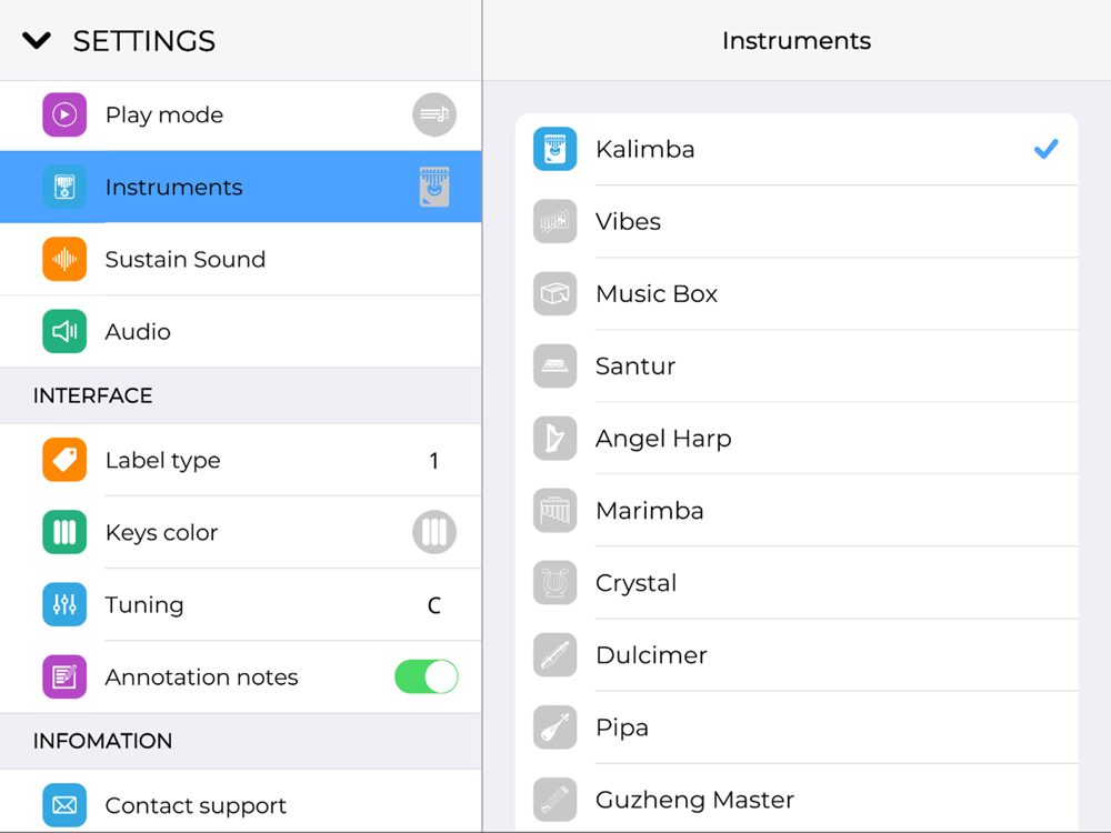 - Connect with real Kalimba with notes recognition mode