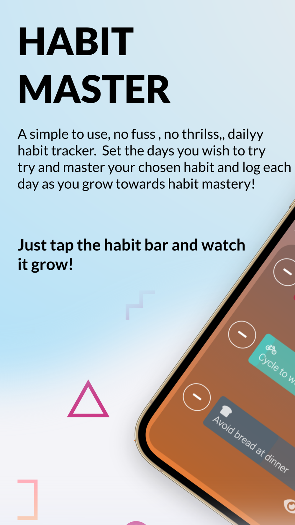 Discover the power of consistency with Habit Master, your personalised habit tracker designed to help you create, maintain, and thrive on your daily routines.