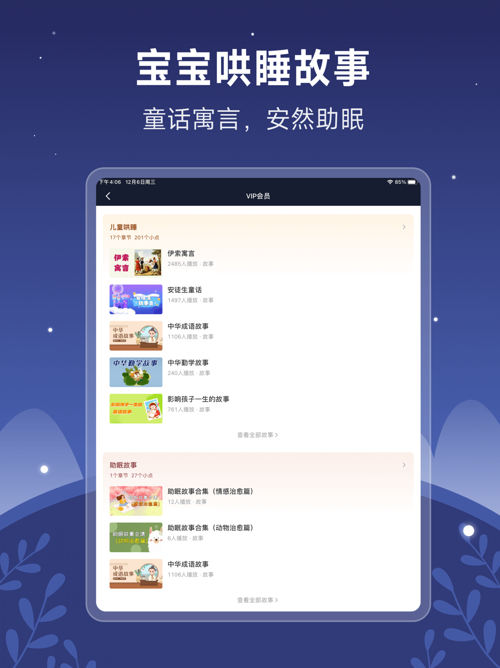 减压故事: 专为缓解压力设计,帮助您释放日间累积的疲惫与压力。