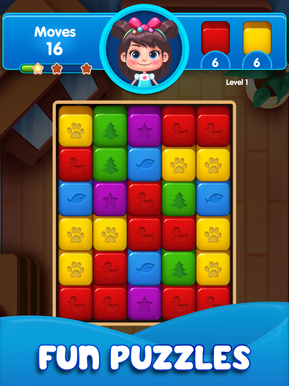 Get ready for an exhilarating puzzle adventure in the colorful world of Blocks Blast - Colors Match 3D! This ultimate puzzle experience will keep you hooked with its unique gameplay and endless fun. Immerse yourself in a crazy cartoon universe where you'll meet charming characters like Betty Cat, and Mia the cute girl. Join them on their whacky journey through magical worlds filled with challenging levels that will test your skills to the limit! Your mission is to blast cubes and create powerful combos to overcome each level's obstacles. With each puzzle you solve, you'll help the lovable Toon gang progress further in their adventure. Prepare for a blastastic time! Features: - Tackle tons of mind-bending levels and unlock exciting new episodes as you progress. - Encounter unique game objectives and face a variety of entertaining obstacles that will keep you on your toes. - Unleash whacky boosters that will help you blast your way through even the trickiest levels. - Collect stars by completing levels to earn fantastic rewards and unlock special surprises. - Form your own team and compete with players from around the world to dominate the puzzle world leaderboard. - Receive extra lives from your teammates, ensuring you never have to pause the excitement. - Seamlessly sync your game progress between your phone and tablet, allowing you to pick up where you left off. - Easy and fun to play, yet challenging to master, providing endless hours of addictive gameplay. Prepare yourself for a thrilling puzzle adventure like no other! With its vibrant visuals, engaging gameplay, and captivating challenges, Blocks Blast - Colors Match 3D guarantees an unforgettable gaming experience. Join the Toon gang today and embark on a journey filled with excitement, strategy, and explosive fun!