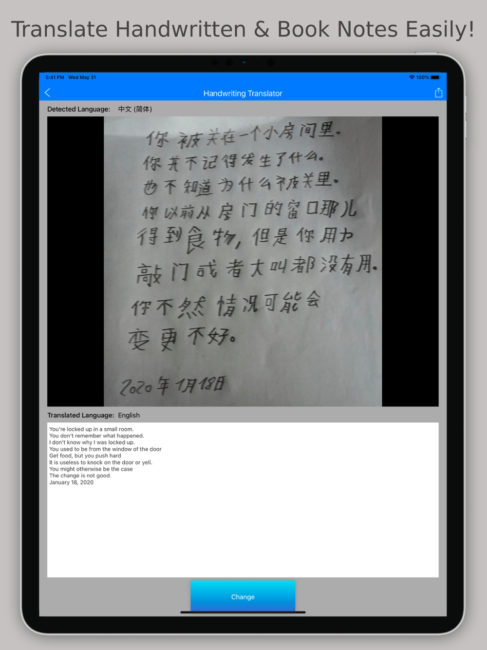 You can scan and translate handwritten text notes or any form of text from paper to editable text in your device in just one click.