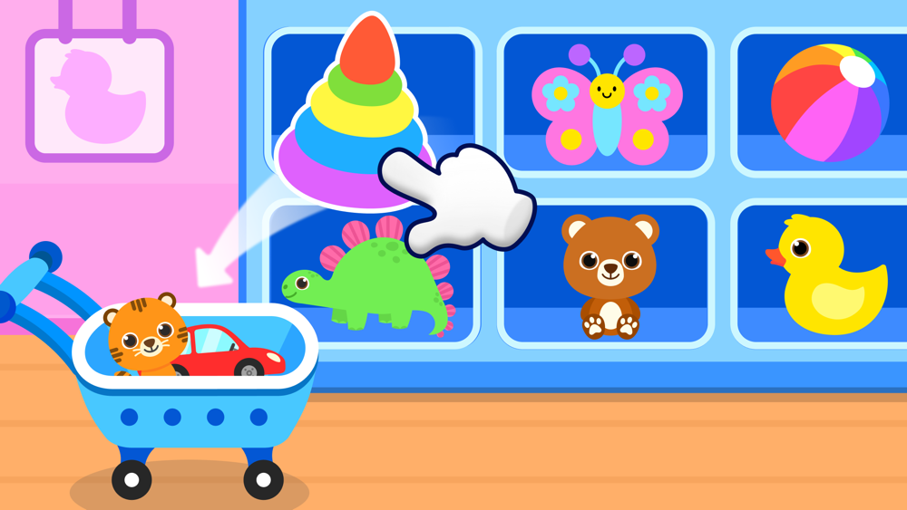 Play toddler games about shopping for kids and babies from 3+ years old on your smartphone! Combine a funny and pleasant gameplay with the useful studying of the process of shopping in a mall!