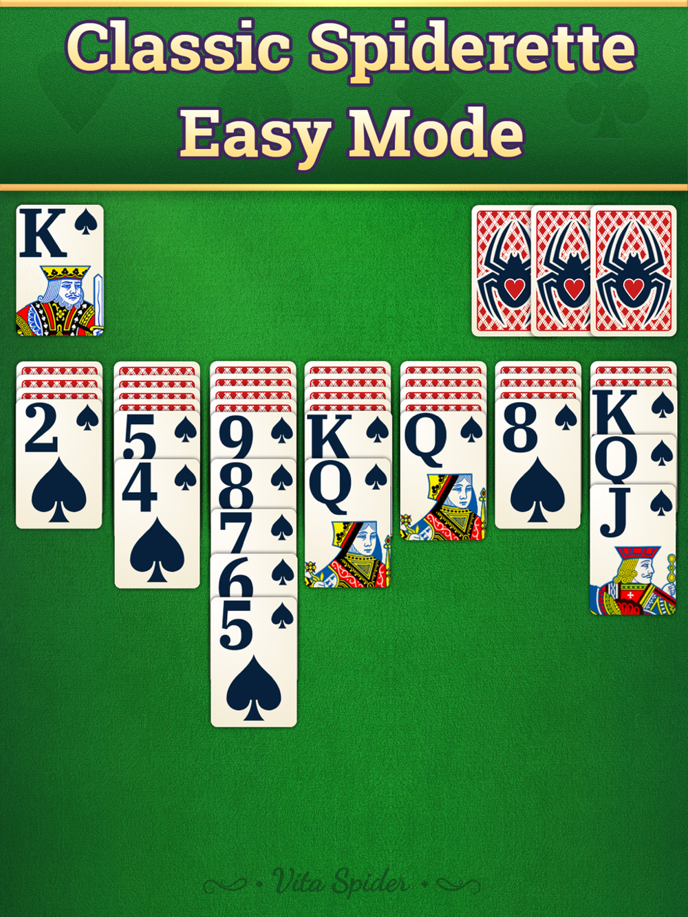 • Relax Your Mind: Spider Solitaire demands focus and strategic thinking, diverting your attention from everyday stressors and helping you feel calm. Playing Vita Spider Solitaire can help you alleviate stress while giving you a sense of accomplishment.