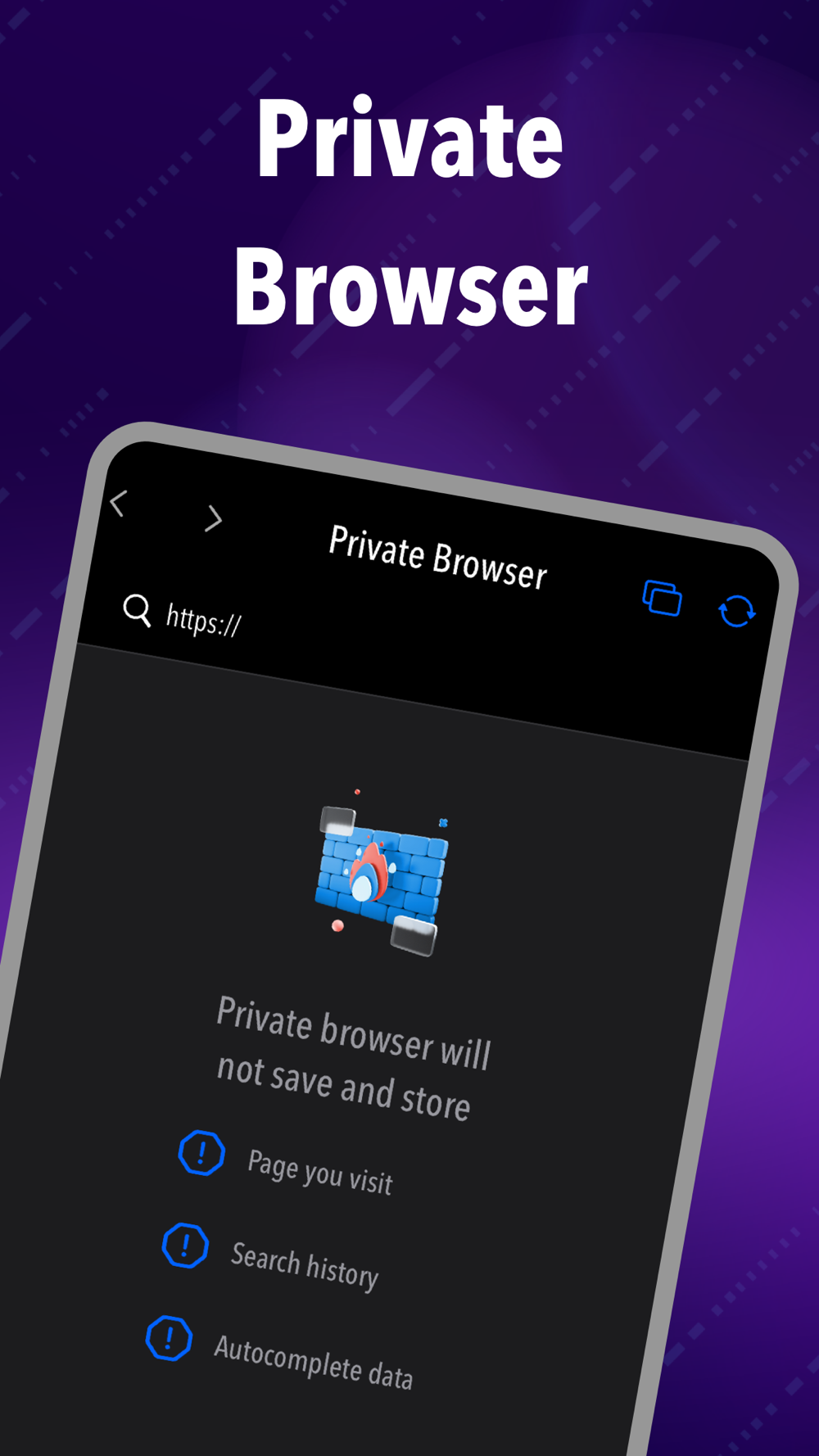 - Private browser: Fast and secure browser with no history, logs or cookies, allowing you to browse the web without leaving any traces. It also includes bookmarking and tabbed browsing for a convenient and personalized browsing experience