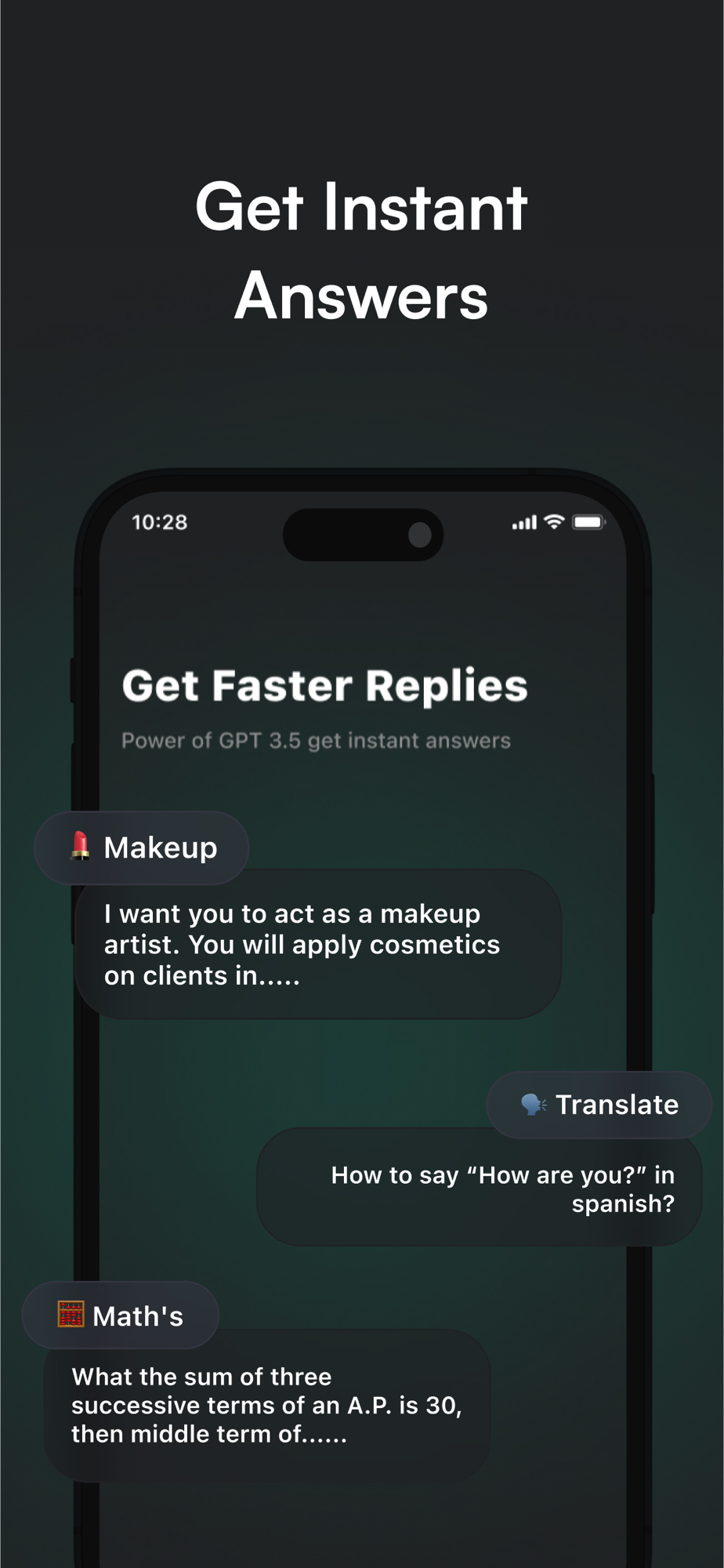 Get Instant Answers: Thanks to "Chat AI's" powerful AI capabilities, you can access instant answers to any question. From historical events and scientific facts to obscure trivia and pop culture references, "Chat AI" provides the knowledge you need at your fingertips.
