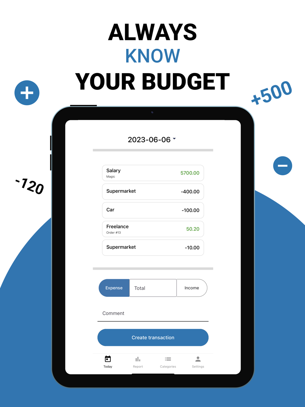 Create categories for expenses and incomes for better visualization of where your money goes.