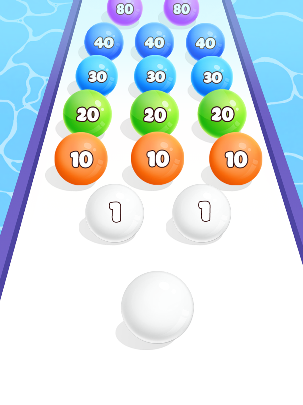 Rules of 3D ball game are so easy. Running from a small ball, with 02 numbers in 3D. During the ball run, merge with balls of the same color to reach 2048. All you need to do is avoid obstacles on the race and run faster to win in Ball Master.