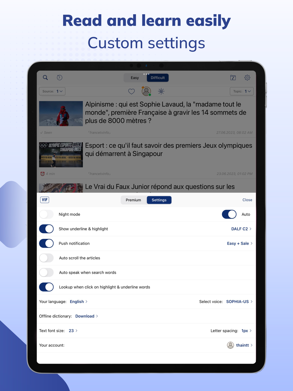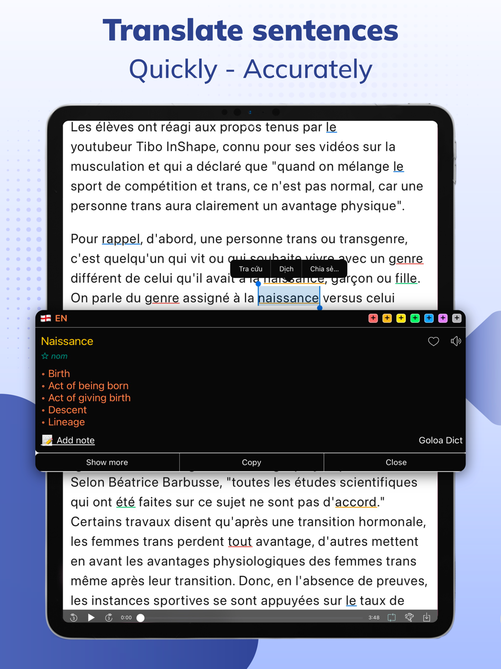 Todaii: Easy French News - Learn French through bilingual news, video, podcasts integrated with a French dictionary. Improve listening, reading, and pronunciation skills, and expand French vocabulary..