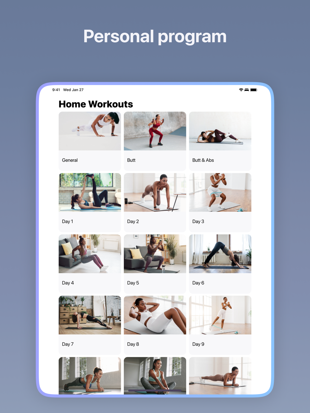 HOMEY is here for you! We provide daily workout routines for all your body. No equipment is needed to lead you to your fitness goal, only you and a little bit of free space. Challenge yourself and break a sweat with this personal plan to work your whole body, get lean legs, toned glutes, strong core and defined abs.