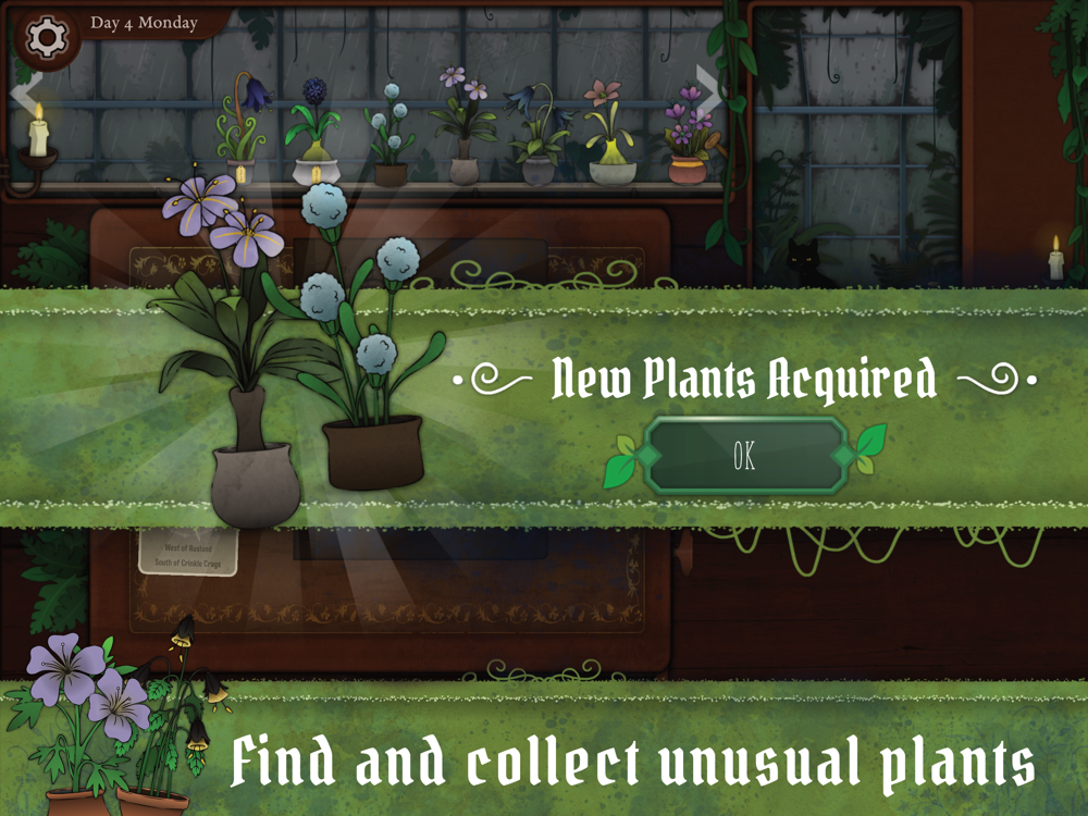 Explore the lands beyond your store to find new plants, but be careful! The dark woods and lakes are not always friendly to a simple herbalist. You might discover powers beyond your wildest dreams - or lose your mind completely. Use context clues to determine which places to visit, and which to avoid!
